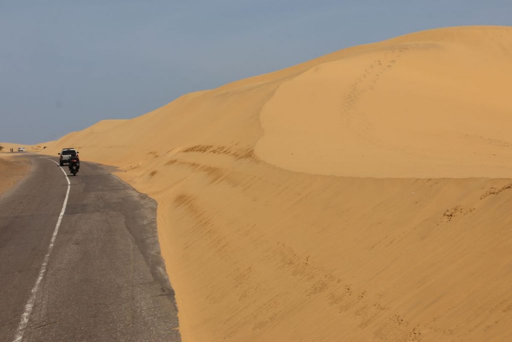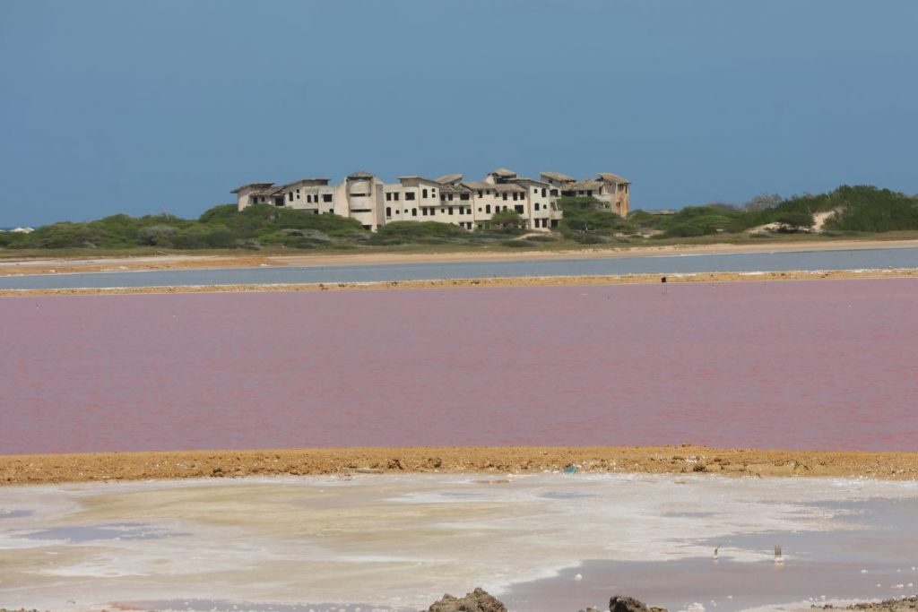Nun geht es Richtung Norden von Venezuela, an den Leuchtturm Capo San Roman. Dabei fahren wir zuerst durch die Dünenlandschaft mitten hindurch. Wanderdünen verengen schon die Fahrbahn und wir sind beeindruckt über die Dimension dieser Wüste. Schließlich passieren wir die leuchtenden Salzsalinen. Rosa, lila, blau und weiß zieht sich das Farbenspektrum unserem Weg entlang und immer wieder befinden sich große weiße Salzberge dazwischen. Es wird gerade abgebaut.