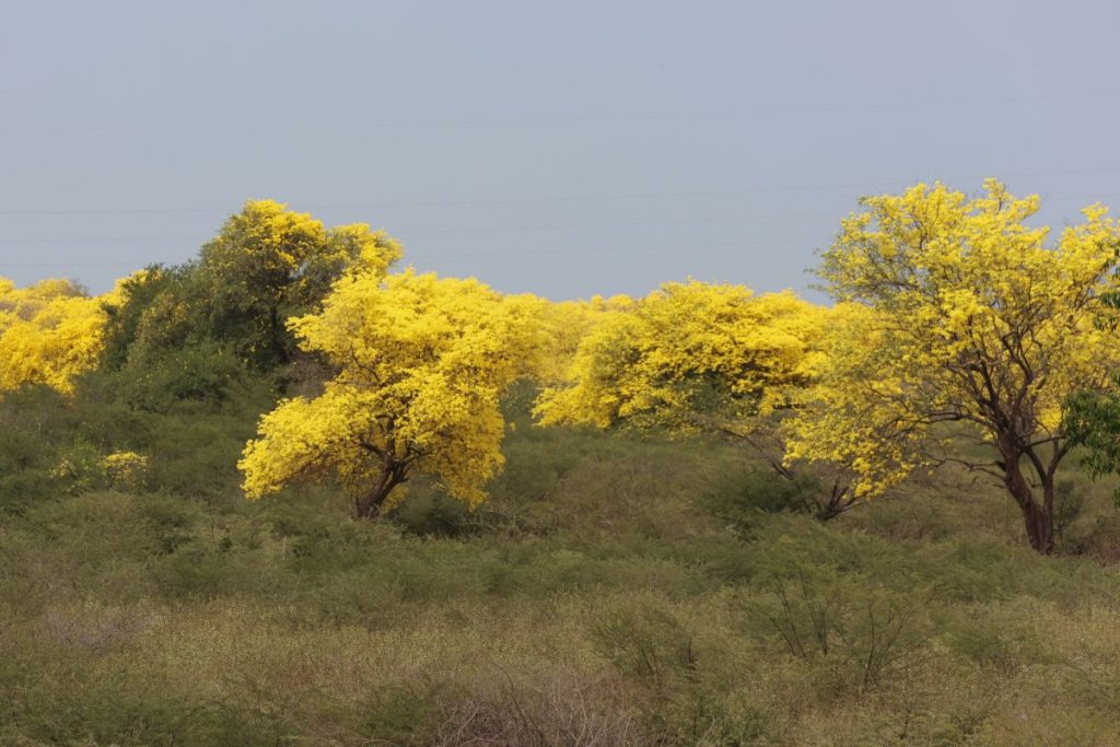 Auf der Fahrt nach Merida ist allerhand los. Erst haben wir das Gefühl in den Frühling zu fahren. Überall blüht der indische Goldregen, der zu den Trompetenbäumen zählt. Herrlich dieses leuchtende Gelb überall. Dann wechselt es sich ab zu einer wilden Kakteenlandschaft. Plötzlich stehen wir in einem Stau. Eine Brücke ist eingebrochen und der Weg führt durch den Fluss. Doch ein Tanklastzug ist mittendrin steckengeblieben. Die Bergungsaktion müssen wir abwarten und insgesamt dauert es 3 ½ Stunden, denn ein anderer LKW hatte keine Chance ihn zu bergen. Der Bagger hat es dann geschafft, doch erst hat er eine Berge-Kette eingebüßt. Wir können endlich weiter.