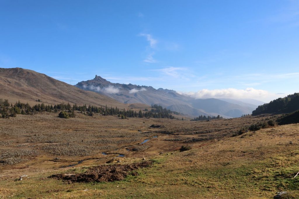 Wir sind an der Lagune Negra und können diesen dunkelgrün gefärbten Gebirgssee noch mit wenig Wolken genießen. Ab Mittag ziehen schon die ersten Wolken auf und ab Nachmittag kommt der Nebel. Wir schmausen unser Wegevesper und lauschen der unglaublichen Stille. Dann geht es die 3,5 km zurück.