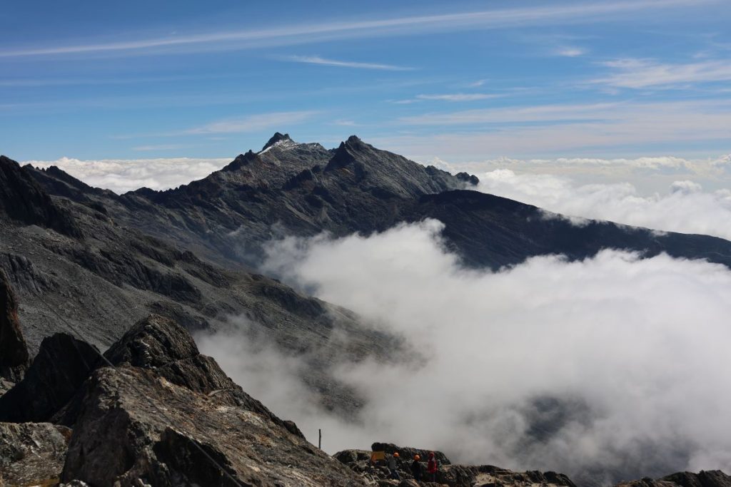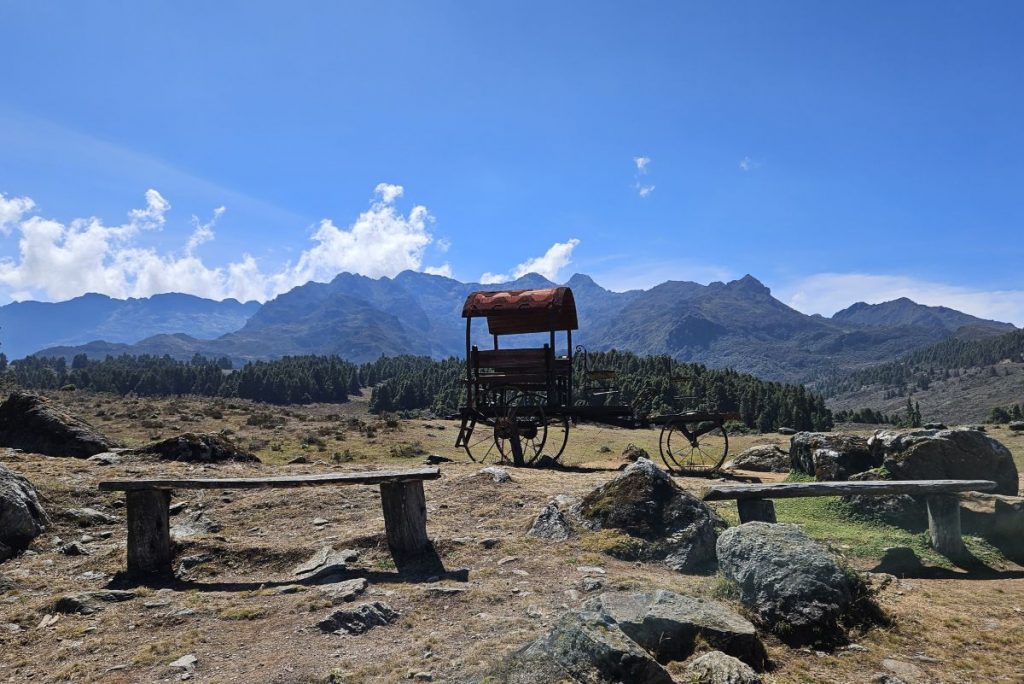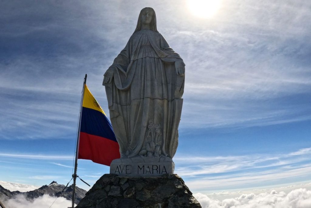 Wir haben Glück, die Mukumbari Seilbahn macht demnächst nach einer langen Pause wieder auf und wir sind bei der allerersten Fahrt dabei. Es ist für uns ein absolutes Highlight mit der höchsten und längsten Seilbahn der Welt auf über 4.765 Meter in 50 Minuten in die Höhe zu fahren. Unsere Tickets sind zwar deutlich teurer, dafür dürfen wir als allererste Gäste die Kabine betreten und in der ersten Reihe sitzen. Ein weiterer Vorteil ist ein Cocktail (oder Kaffee) auf der zweiten Station. Wir landen auf dem Pico Espejo bei einem Traumwetter. Wir erfreuen uns über einen unvergesslichen Ausblick auf den höchsten Berg Venezuelas, den Pico Bolivar. Er erhebt sich majestätisch mit seinen 4978 Metern direkt vor uns. Damit ist er höher als der höchste europäische Berg in den Alpen, der Mont Blanc in Frankreich mit 4806 Metern. Und Maria bewacht den Rundumblick auf die Anden. Wir genießen pur!!! Nach 40 Minuten machen sich einige Symptome der Höhe bemerkbar und wir fahren wieder eine Station hinunter. Wir fragen, ob wir auf den Wegen hinabwandern dürfen, aber es wird verneint. Dann halt eben nicht, dafür kosten wir Vesper und den Cocktail genüsslich in der Sonne auf verschiedenen Stationen bei der Abfahrt. Was für ein herrlicher Tag. Unvergesslich!!!