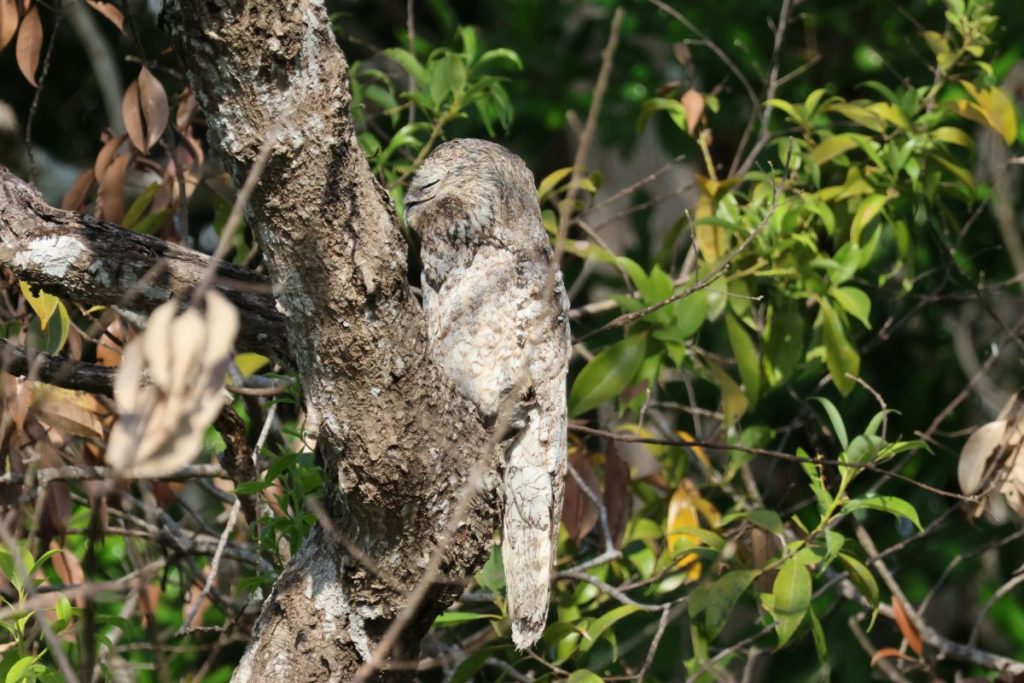 Plötzlich, mitten auf unserem Weg schlängelt eine Anakonda. Die Freude ist groß und Rafael, unser Guide hält sie am Schwanz, damit sie nicht gleich wieder verschwindet. Er ruft mich und gibt mir den Schwanz der Würgeschlange in die Hand. „Es passiert nichts“, verspricht er mir. Klick, klick, klick ein paar Fotos und wir lassen sie weiterziehen. Ein Waschbär und einen gut getarnten Potoo (Riesentagschläfer) entdecken wir auch, letzteres ist ein nachtaktiver Vogel, der in Mittel – und Südamerika heimisch ist und sich tagsüber durch seine Tarnung perfekt an Äste anpasst, um zu schlafen.