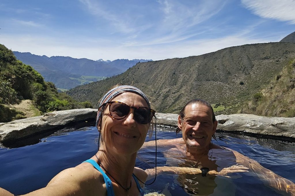 Wir machen uns auf in die Sierra Nevada und möchten uns in der Kühle der Anden aufwärmen. Wie passt das zusammen? Ganz einfach, wir wandern 2,5 km mit 1300 Höhenmetern zu den Thermalquellen La Musui nahe Mucuchies liegt auf über 3000 Metern Höhe. Hört sich nach wenig an, ist aber mit der dünnen Luft doch auch anstrengend. Heiße, mineralhaltige Quellen entspringen direkt aus dem Fels und füllen drei aus Naturstein gemauerte Becken. Wir sind fast alleine und wählen das oberste Becken mit direkter Wasserzufuhr aus dem Fels. Hier wärmen wir uns auf, in dieser einzigartigen Natur inmitten der Andenkulisse und können es kaum fassen, so etwas Besonderes zu erleben.