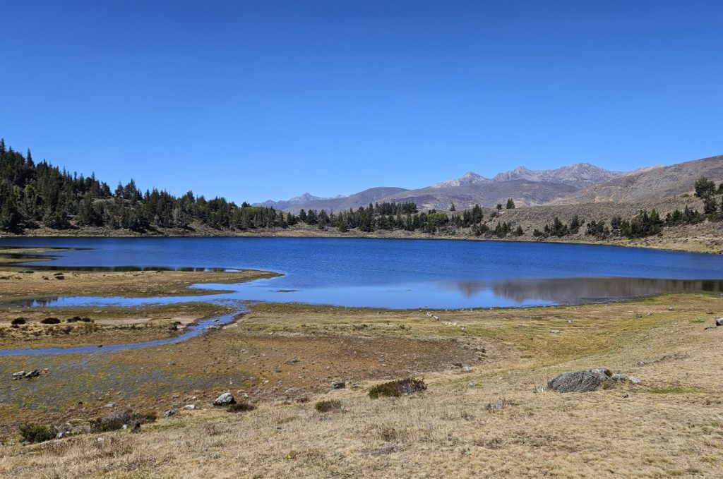 Und das Besondere hört nicht auf. Wir fahren zur Lagune Mucubaji auf 3630 Metern Höhe. Wie ein stahlblauer Juwel sticht die Lagune aus der Landschaft. Wir können mit Nestor einem Motorradreisenden Venezolaner die Übernachtung hier vor Ort organisieren. Er ist super freundlich und hilfsbereit. Dann begeben wir uns im Herzen des Paramo- Hochlands auf die Wanderschaft zur Lagune Negra. Es geht, wie es in den Bergen eben ist, auf und ab, diesmal über 600 Höhenmeter. Wir nehmen uns Zeit.