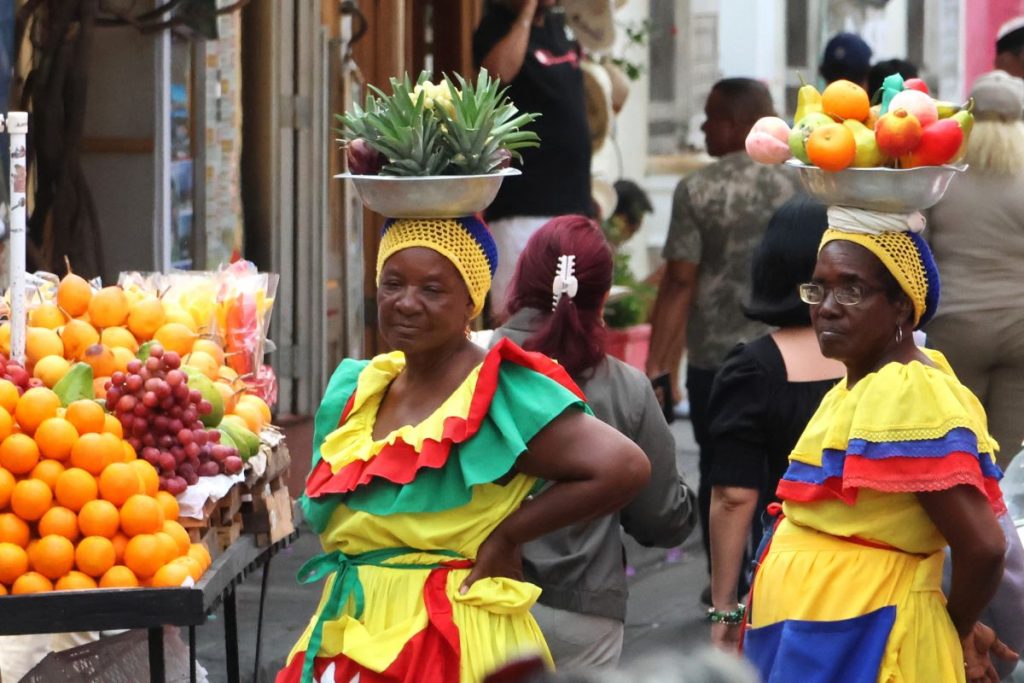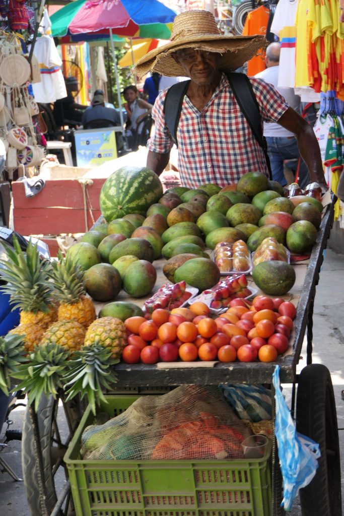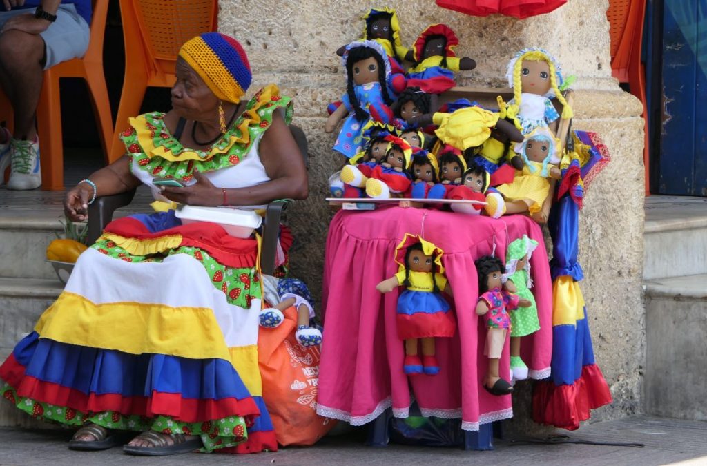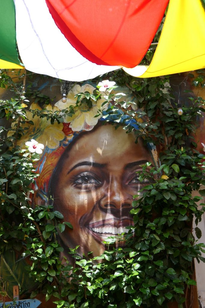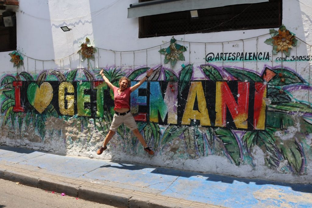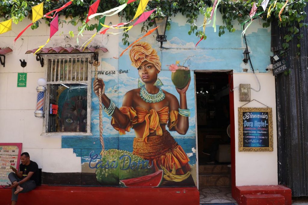 Wir schlendern mehrmals durch Getsemani, denn dieser Stadtbezirk hat seinen besonderen Reiz. Hier lebten während der spanischen Kolonialzeit Bedienstete der Oberschicht sowie freigelassene Sklaven. Es entwickelte sich zu einem multiethnischen Viertel und hat seinen Flair behalten. In jeder Richtung können wir etwas entdecken und vor allem die Farben knallen uns entgegen. Farbenfreude an jeder Ecke, Musik, Obststände und allerlei Artesanias (Handwerkskunst) säumen die Gassen. Es gefällt uns hier und die Murals leisten ihren Beitrag dazu. Die Ostverkäuferinnen (Palenqueras) in ihren bunten Gewändern tragen die Obstschalen nur wegen den Touristen auf dem Kopf. Ein gemeinsames Foto gibt es nur für Bares.