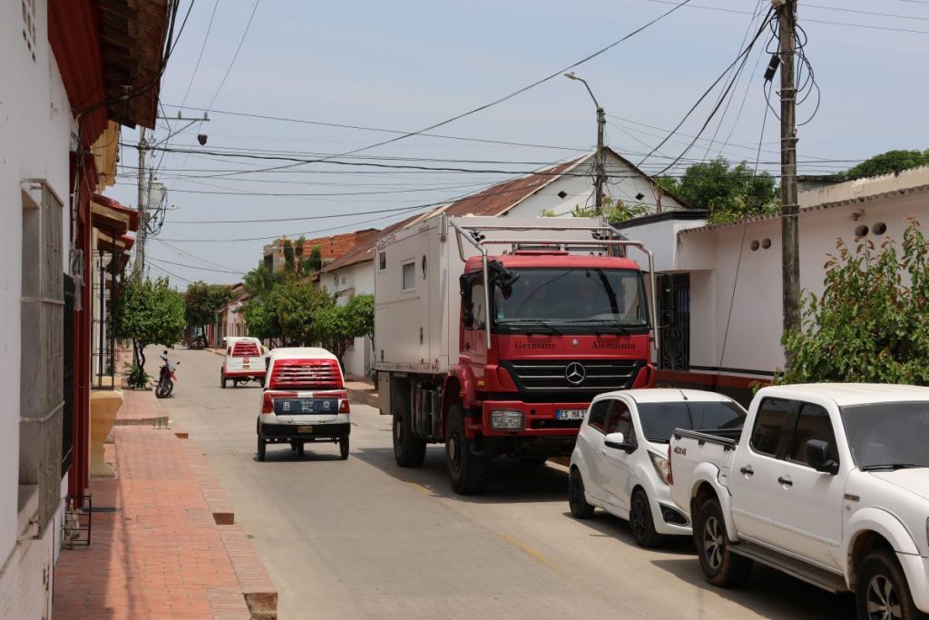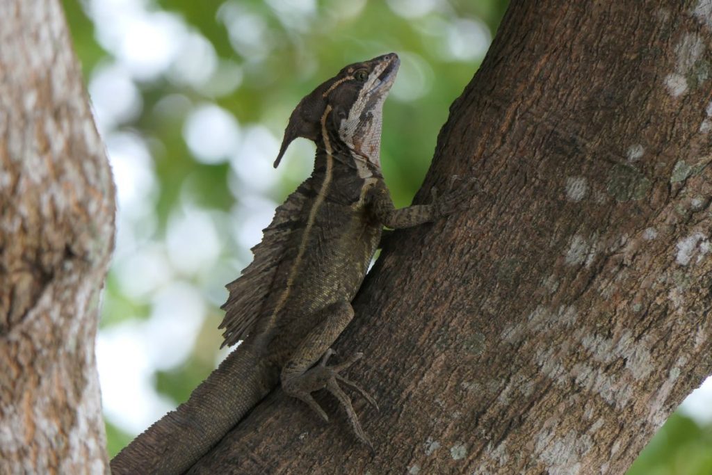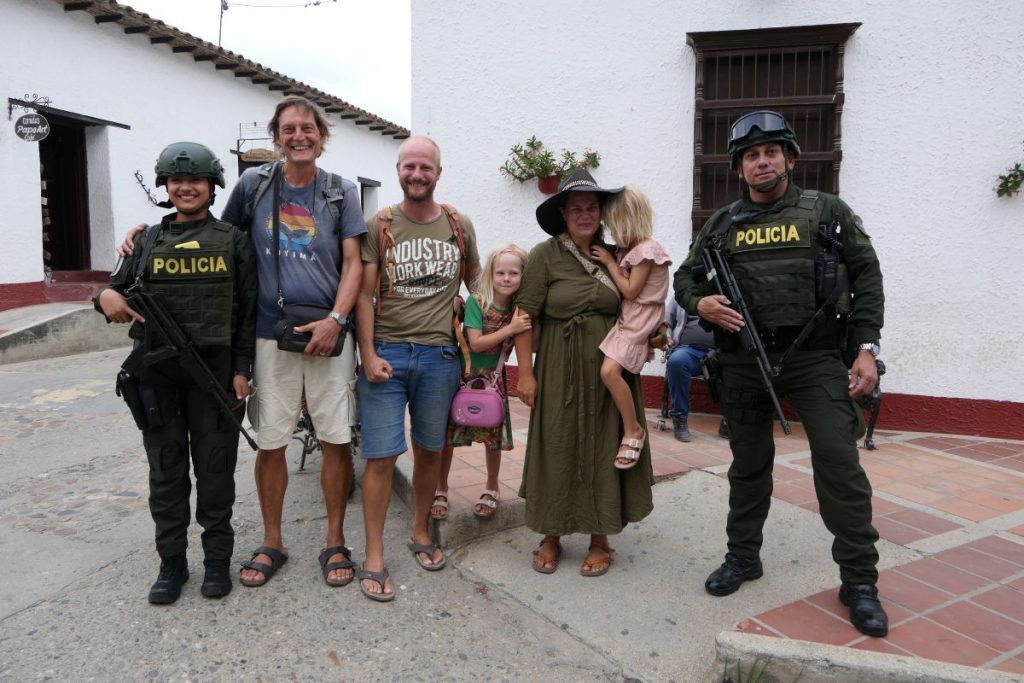 Eine Reise nach Mompox kommt einer Zeitreise gleich. Dort sieht alles noch so aus wie vor einigen hundert Jahren. Dazu kommt noch eine Steigerung im Schwitzen, was wir eigentlich schon gut kennen und jetzt hier in Mompox, im heißesten Ort Kolumbiens, bei 40° noch aufheizen können. Die Parkplatzsuche bei solchen Temperaturen mit vielen tiefhängenden Kabeln setzt dem Schwitzen noch eine Krone auf. Wir finden auf einer Durchgangsstraße Platz und begeben uns zu Fuß zu den herrlichen Kirchen, kolonialen Plätzen und Häusern mit gewaltigen Innenhöfen. Sie dienen als Hotel und Unterkunft und mit dem Fluss Brazo de Mompos bekommen die Plätze am Wasser einen besonderen Charakter. Wir entdecken in den üppigen Bäumen und auf den Wiesen jede Menge Leguane. Einer größer und schöner als der andere. Es sind so viele, dass wir sie nicht mehr zählen können. Auch ein Basilisk steht Model dient uns beim köstlichen libanesischem Restaurant als Bildkulisse. Family everywhere ist ebenso dabei, wir haben uns nun zum 8. Mal auf der Reise getroffen. Da wir dieselbe Richtung vor uns haben reisen wir ein Stück zusammen. Es ist immer wieder schön, das Erlebte gemeinsam zu teilen, wenn man sich so gut versteht. Das Essen ist ein Genuss und gestärkt geht es weiter.
