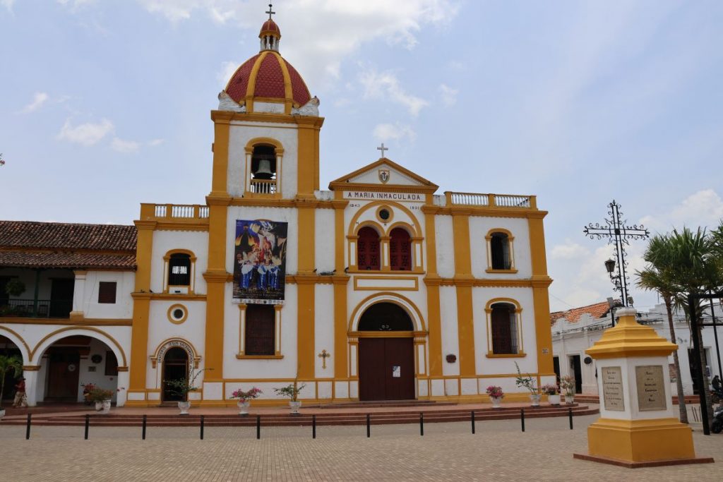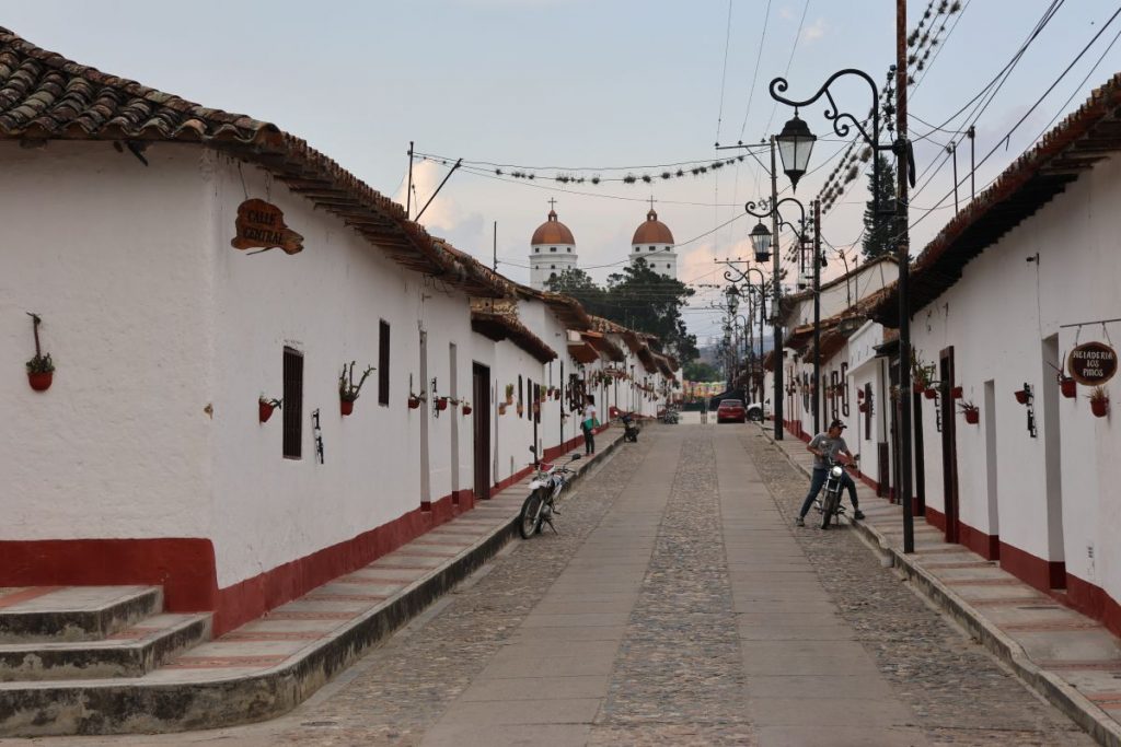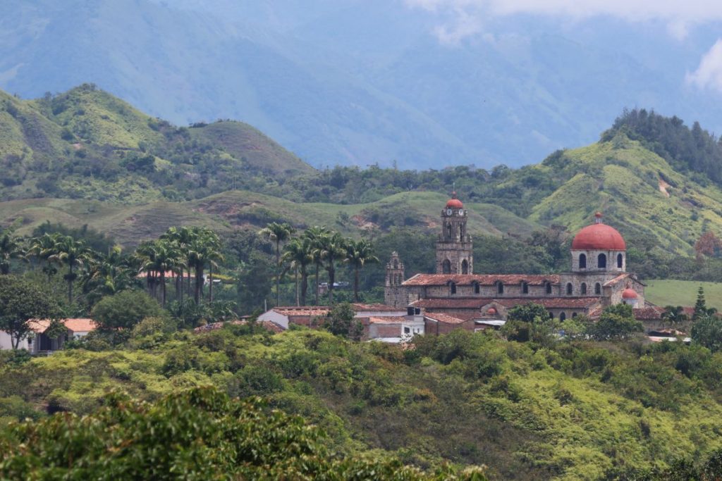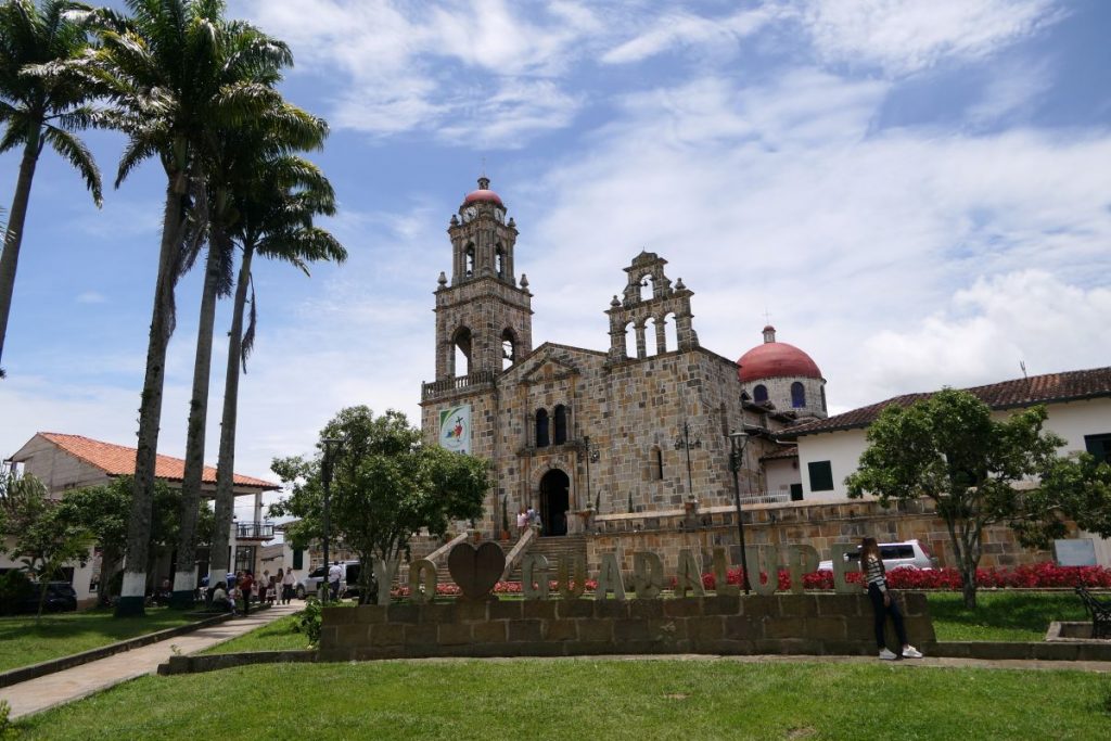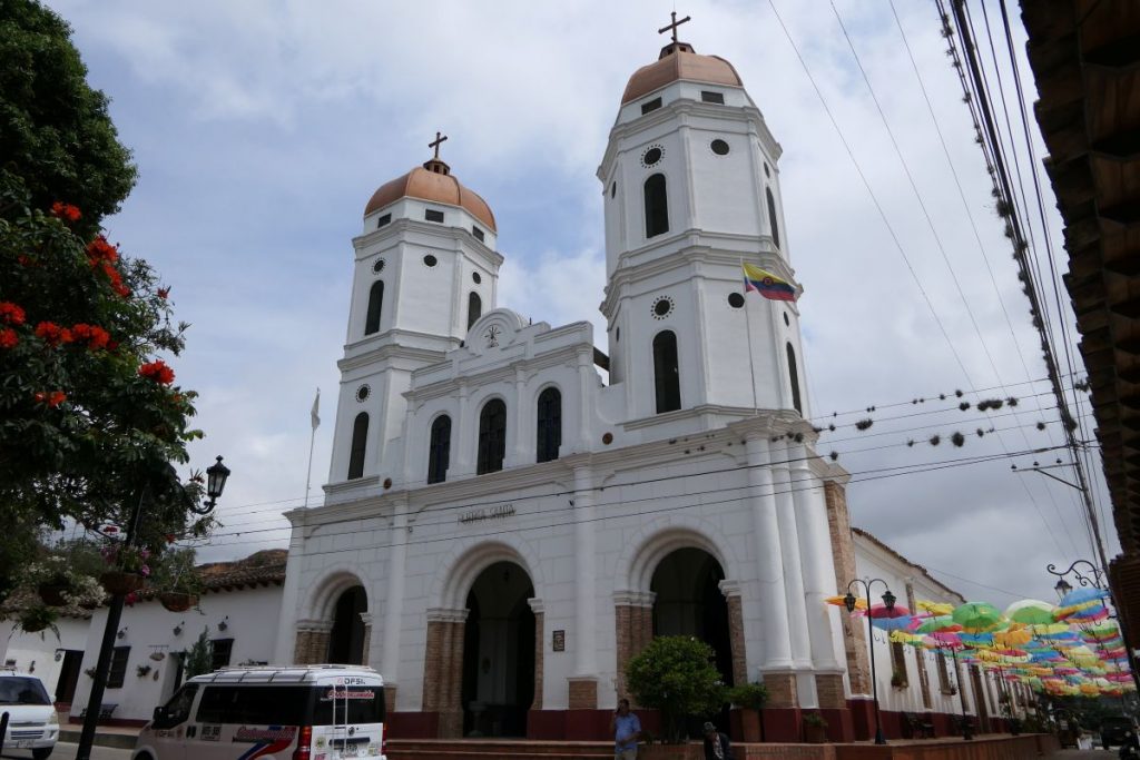Wir erreichen Guadalupe und fahren mitten hinein in das Bergdörfchen. Seine schöne Steingebaute Kirche mit rotem Kuppeldach ist schon von weitem zu erkennen. Auf dem Hauptplatz mit seinen mehr als 20 Königspalmen, die den Park vor der Kathedrale säumen. Niedrige weiß getünchte Häuser, die ganz typisch sind für Santander, malen den Ort aus.