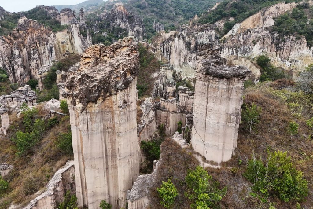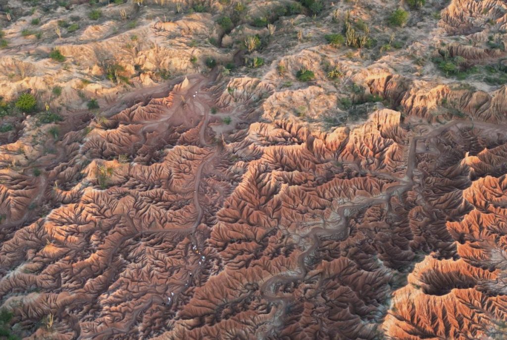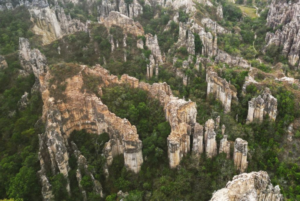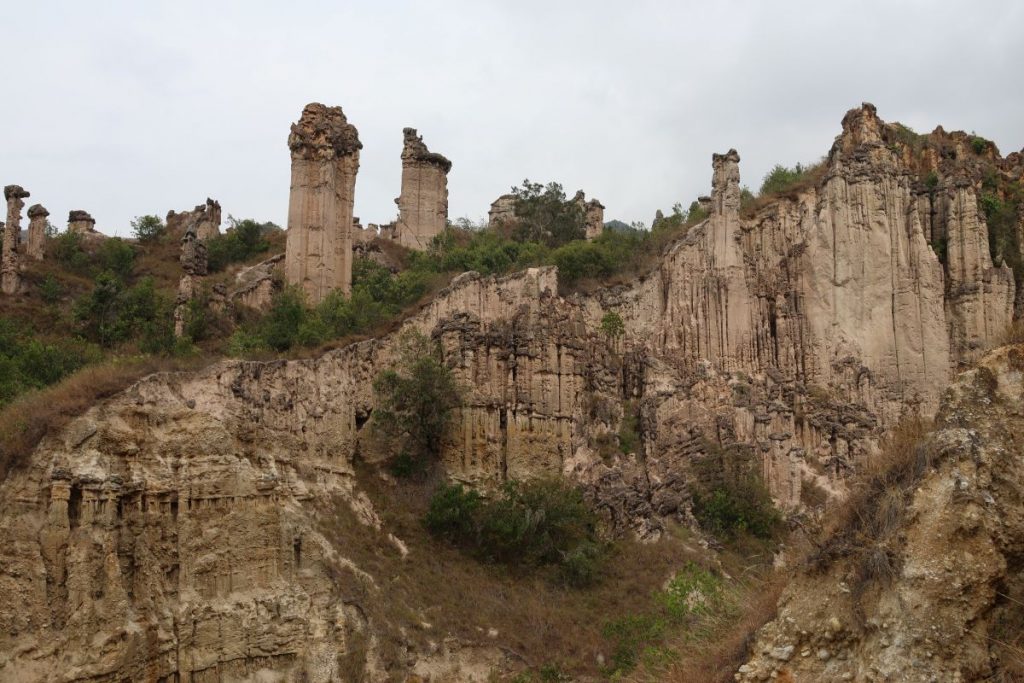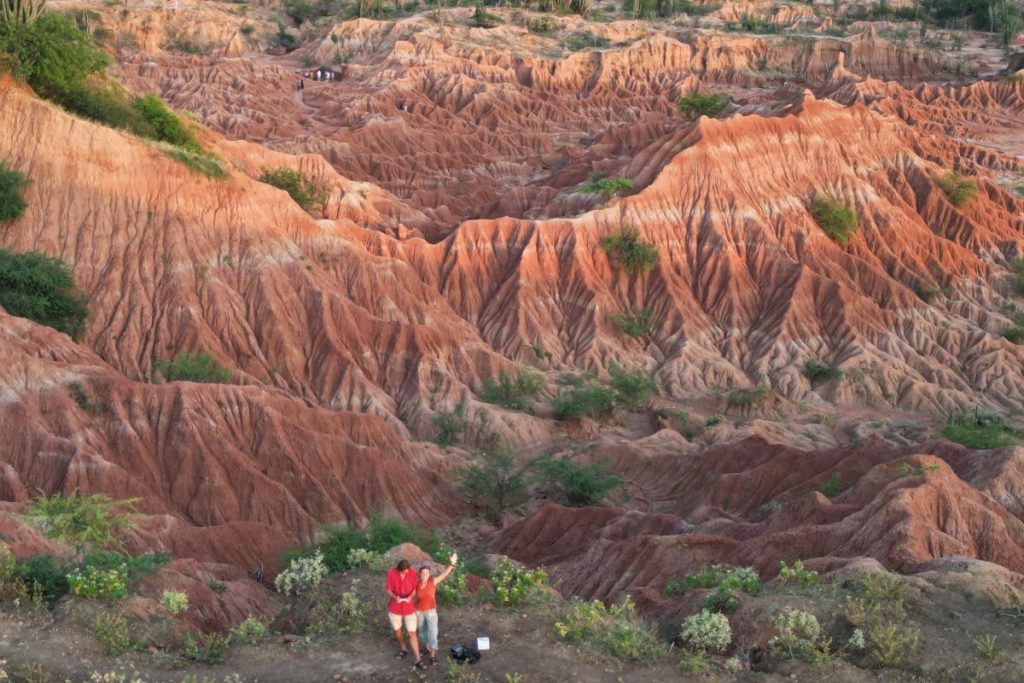 Einer der kleinsten Nationalparks Kolumbiens zieht uns in seinen Bann: Area Natural Unica Los Estoraques hat auf uns sogleich eine besondere Ausstrahlung. Wir richten uns um den Regenbaum ein und erfahren von Campo, dem Platzwart, dass sich an diesem Platz gute energetische Energien befinden, denn es gibt hier viele Mineralien. Wir fühlen uns jedenfalls alle sehr wohl, wandern durch die tolle Landschaft der Hoodoos und Säulen, durch enge Felsspalten in die verlorene Stadt und in die Höhle der Skelette. Einen Dank geht an Eefke für ihre wunderbaren Drohnenbilder, denn diese ist deutlich größer und bei den aktuellen Winden nicht so empfindlich als unsere. Wir backen gemeinsam Pizzen, füttern die jammernde „Hauskatze“ mit erworbenem Futter, genießen den Frieden hier am Platz und beobachten die UNO- Abgeordneten, die diese wüstenähnlichen Steinformationen auch erleben möchten. Insgesamt bleiben wir 4 Nächte und es tut uns allen sehr gut.