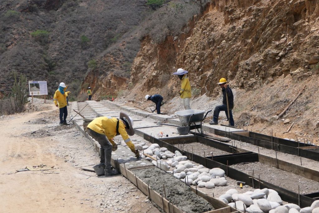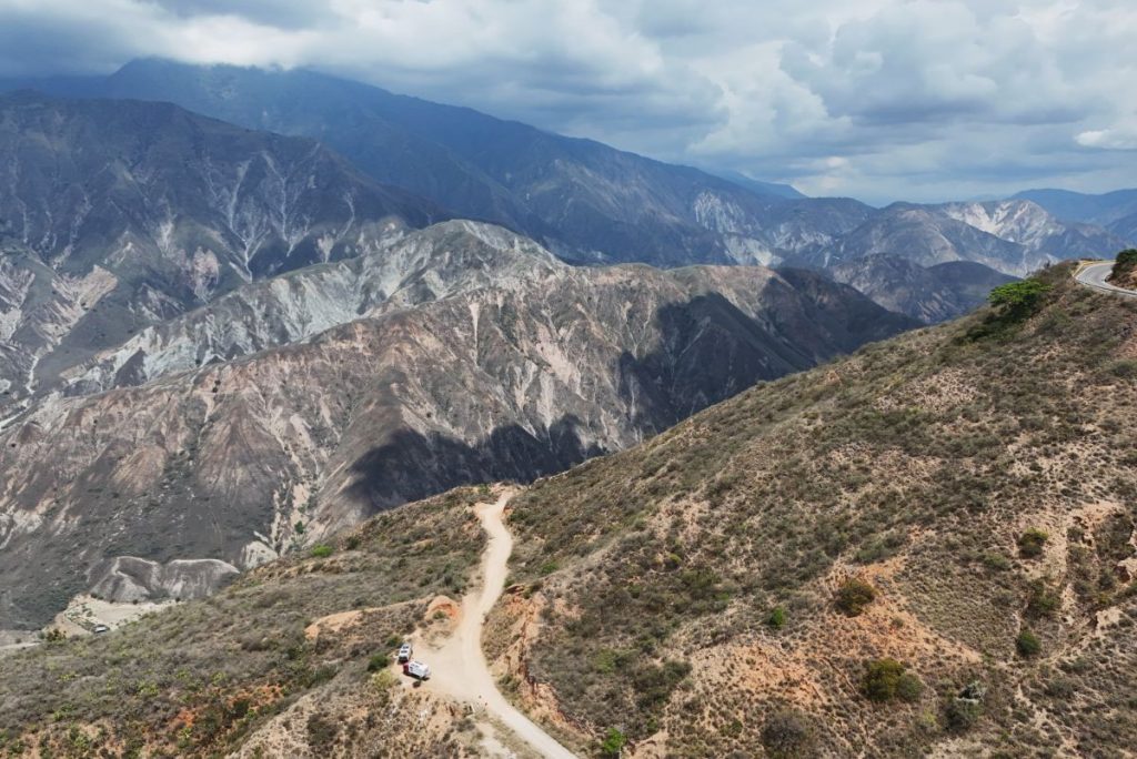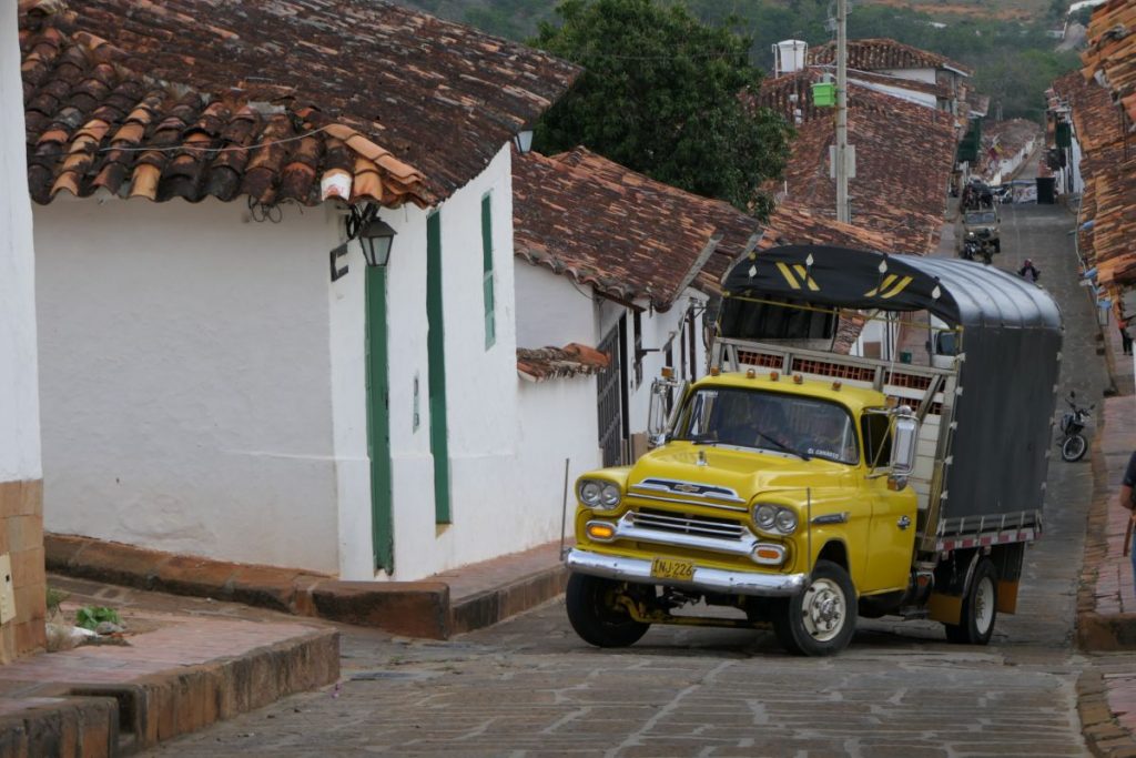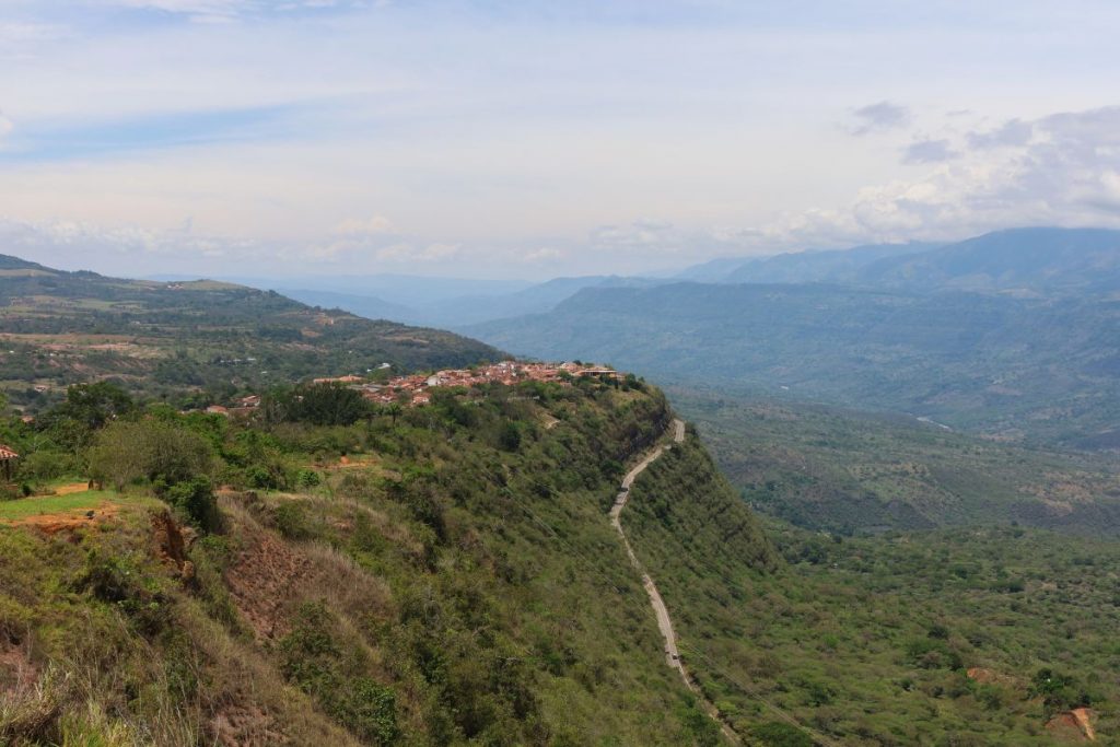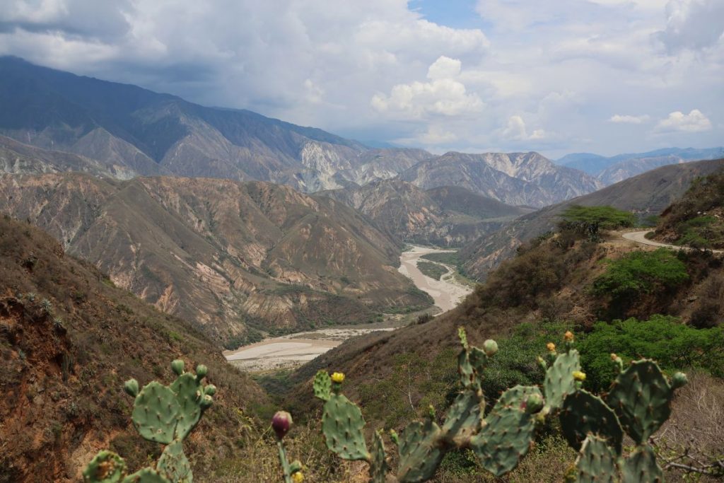 Nach Bucamaranga schraubt sich Emma die Serpentinen bis auf 2000 m hinauf. Die Strecke ist malerisch schön und wir erhaschen immer wieder einen Blick in den Chicamocha Canyon, der als der zweitgrößte Canyon weltweit gilt. Wir merken, dass es das Ende der Trockenzeit ist, denn der Landschaft fehlt das grün. Nur in Flusstal des Chicamocha grünt es stellenweise durch. Es ist ein herrlicher Anblick und mit den vielen Lastern geht es nur sehr langsam auf der Bergstraße 45A vorwärts. Am schönen Aussichtspunkt auf der Nebenstraße Cepeita angekommen bleiben wir auch für die Nacht stehen, erkunden die Umgebung und beobachten den mühevollen Straßenbau bei der großen Hitze trotz der Höhe von 1084 m. Wasser- und Honigmelonen werden mit den Mopeds die 300m von einem LKW zum anderen gefahren, da die Straße nicht befahrbar ist. Ziegen sind hier reichlich vertreten und die ein oder andere schleicht sich auch um unsere Emma herum.