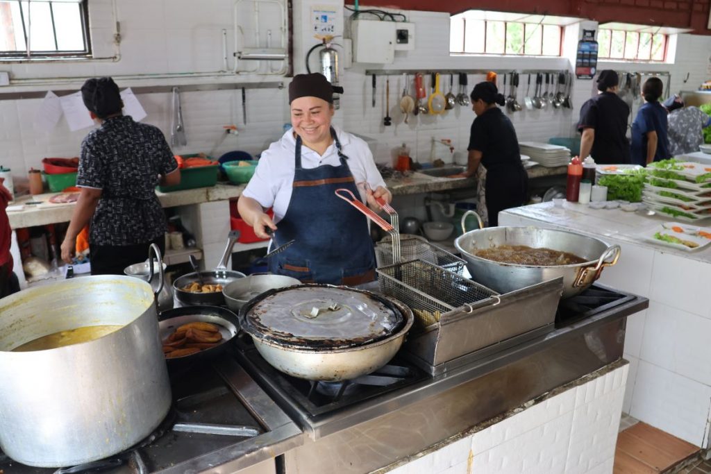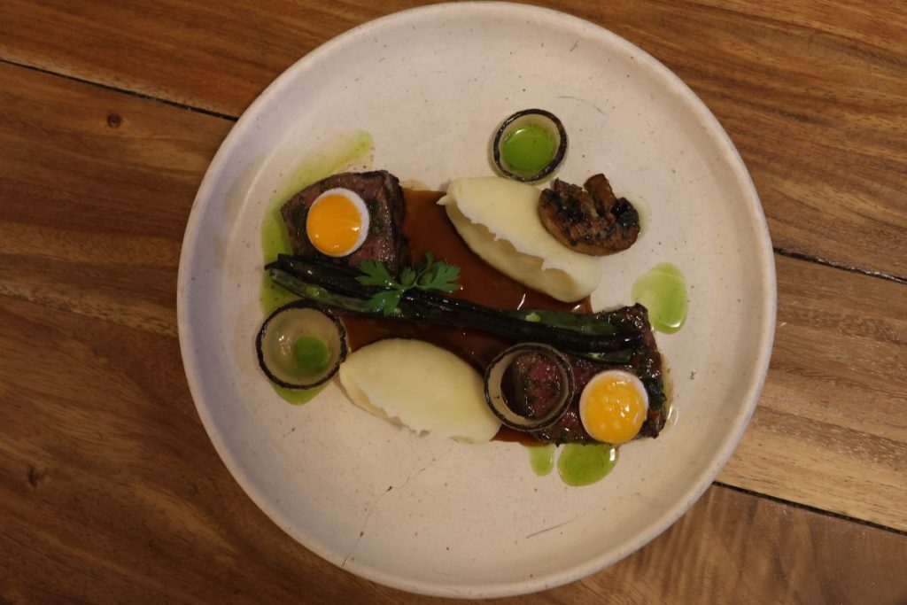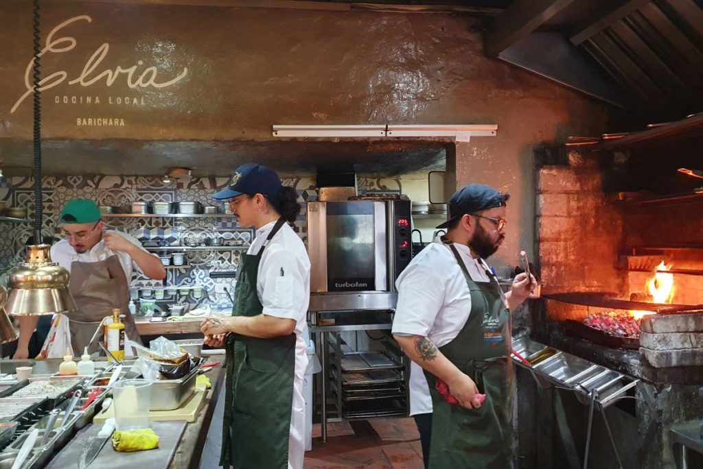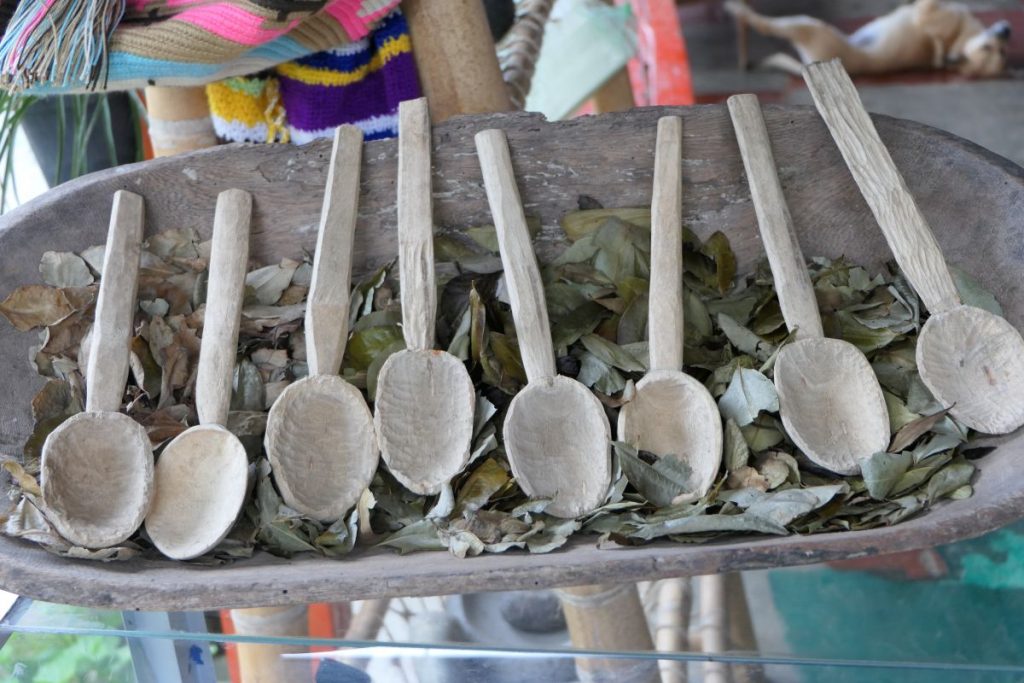 Auch Barichara selbst begeistert uns. Egal durch welche Türe wir schreiten, es ist geschmackvoll und liebevoll gestaltet und… mehrheitlich aus natürlichem Material gebaut. Dekorationen, Handwerkskunst, Gebäude sind aus Holz, Stein, Äste, Kokosnussschalen etc. Und die Küche von Elvia ist ein absolutes Highlight. Mittlerweile sind auch Ana und Angelo auf den Campingplatz gekommen und wir genießen zusammen diese Spitzenküche mit rind und Forelle und garniert mit Pinzette. Die offene Küche ist eine Augenweide und die Gerichte eine Gaumenfreude.