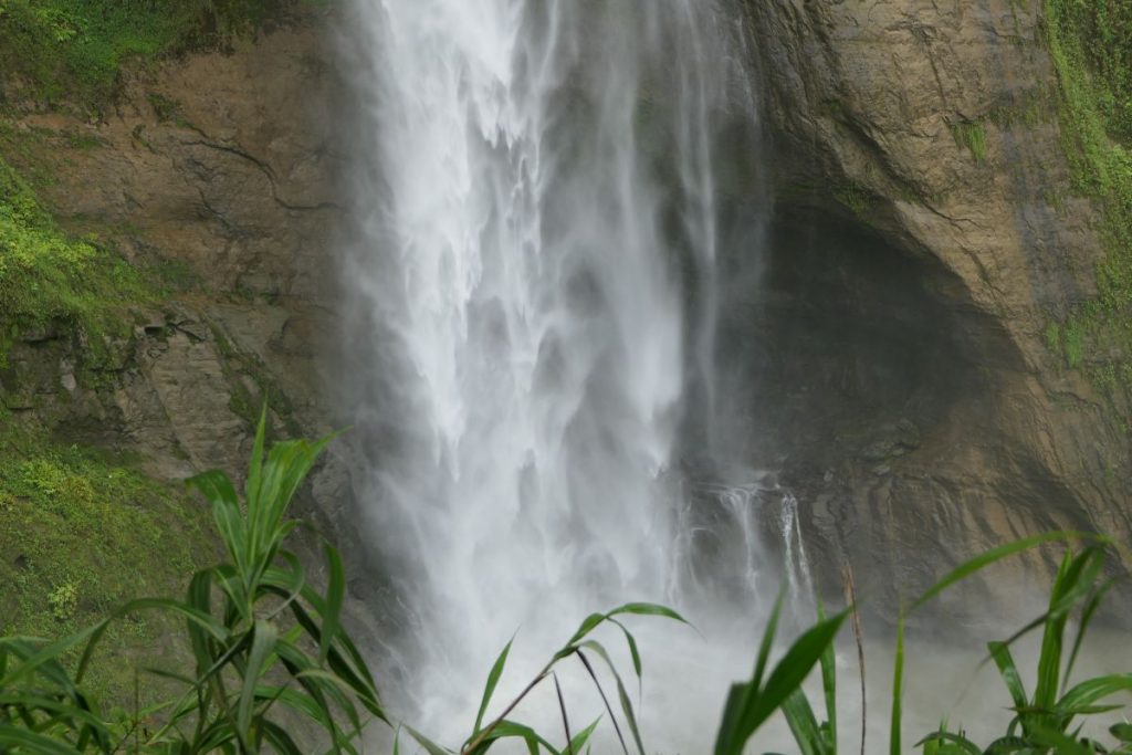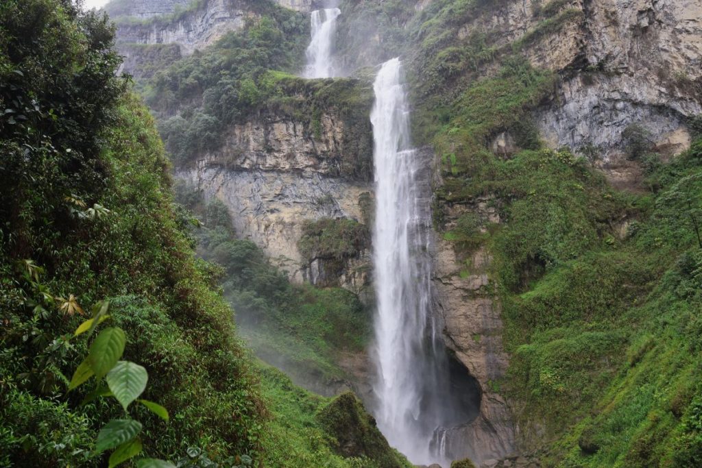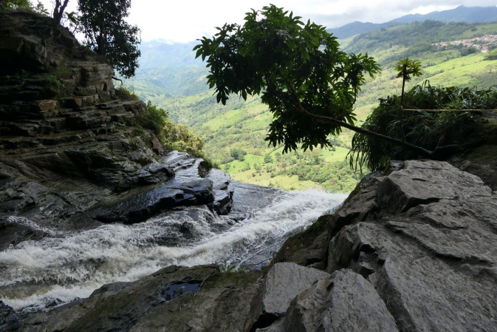 Der riesige Wasserfall über drei Stufen und einer Höhe von 300 Metern ist eine absolut beeindruckende Erscheinung. Wir wandern über matschig- rutschigen Grund abwärts zu einem nahen Aussichtspunkt. Wir entdecken Hummerscheren, Weißbauchtukane und Riesen-Orchideen in Hülle und Fülle. Die Wolken verziehen sich und präsentieren uns einen freien Blick auf einen der beeindruckendsten Wasserfällen in Kolumbien.
