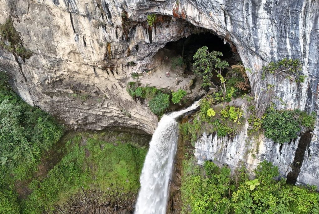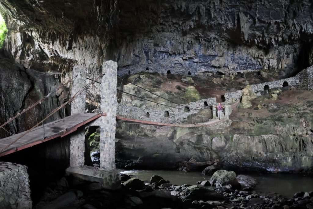 Doch das Fenster von Tisquizoque ist nochmals ein ganz besonderer Platz. Diese Höhle hat eine mystische Ausstrahlung, sie wurde von den Ureinwohnern Muisca, Muzos und Tisquizoques als ritueller Platz belebt und sie betrachteten diesen Ort als heilig. Der Legende nach wurde die Höhle von den Häuptlingen genutzt um Rituale durchzuführen und Kontakt mit ihren Göttern aufzunehmen. Das können wir uns sehr gut vorstellen, denn schon das Betreten dieser Tropfsteinhöhle mit den Mauern, klingenden Wassertropfen, Lichteinfällen und der Hängebrücke lässt uns den Atem stocken. Es entsteht ein Gefühl der Ehrfurcht!