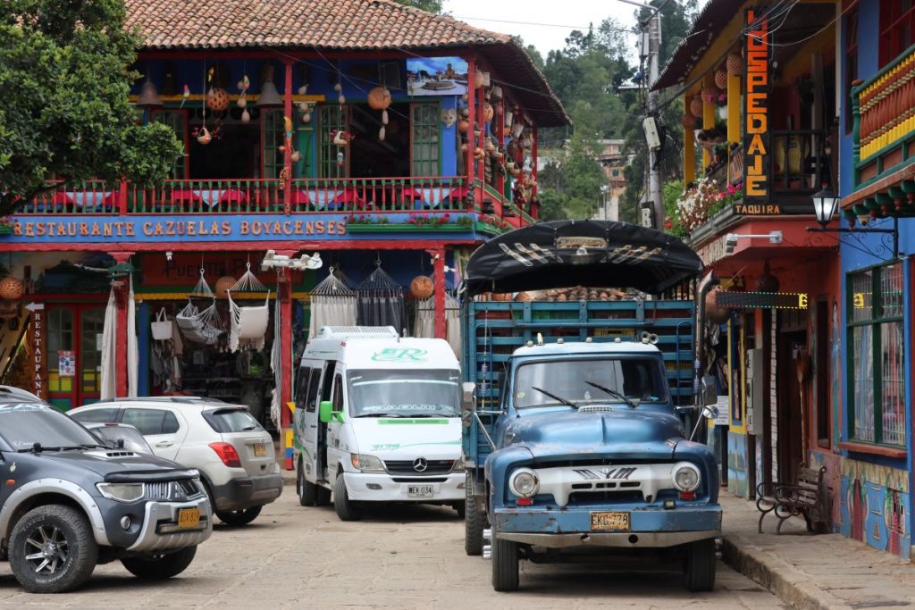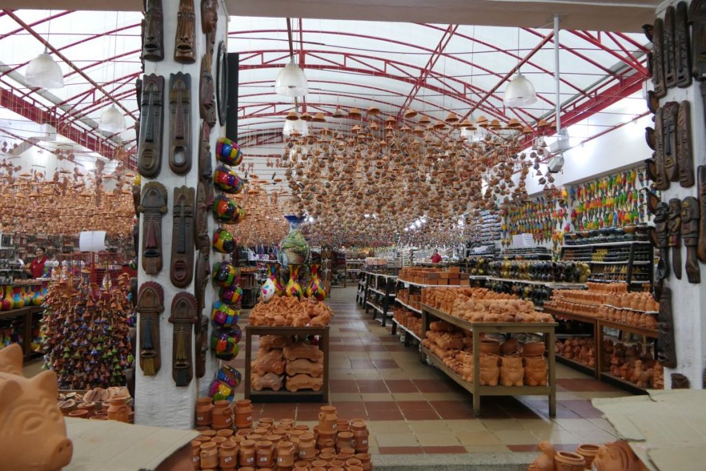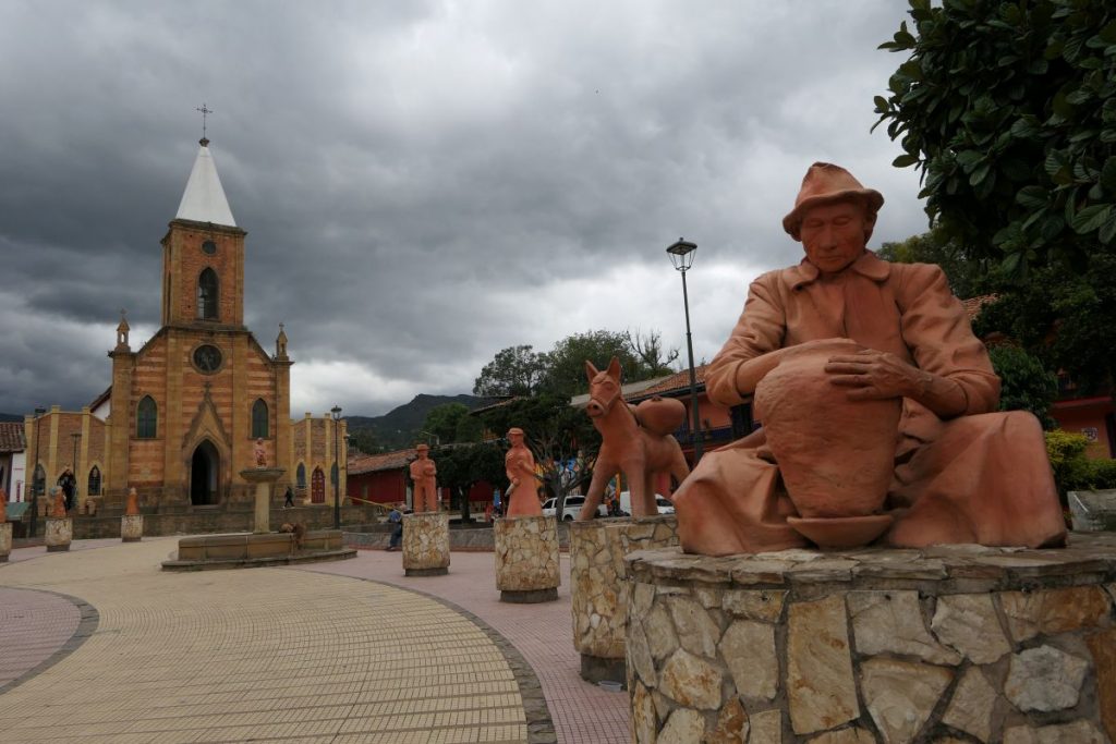 Bunt soll es werden, und darum fahren wir 23 km südlich in die Töpferstadt Raquira auf 2.150 m. Schon vor der spanischen Eroberung war dieses zentrale Hochland der kolumbianischen Anden für ihren Ton und der Keramik berühmt. Also Phantasie und Kreativität in allen Farben und Formen sind hier zu entdecken. Eine Warenvielfalt, die uns fast schon erschlägt. Wer soll das alles kaufen?