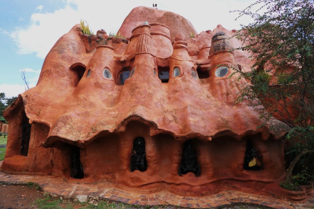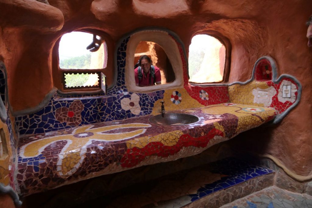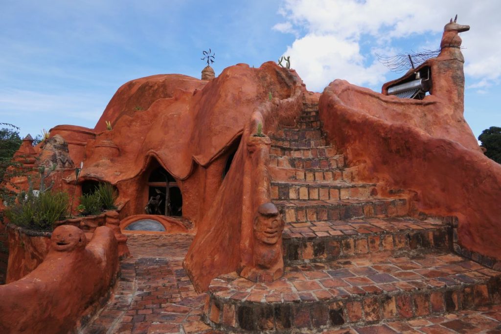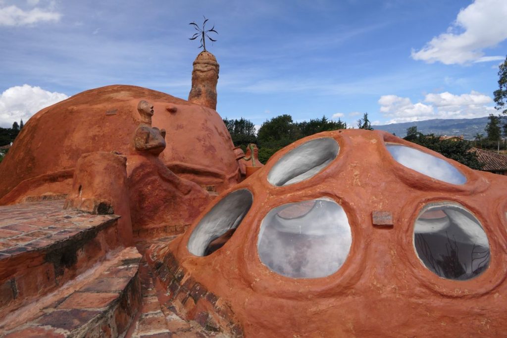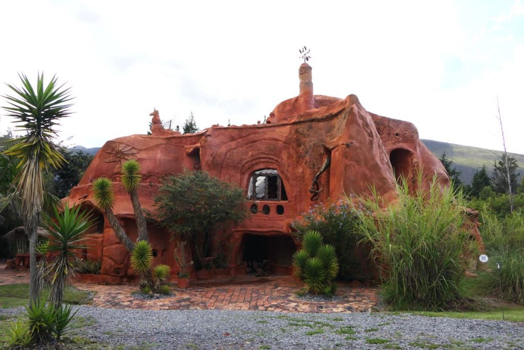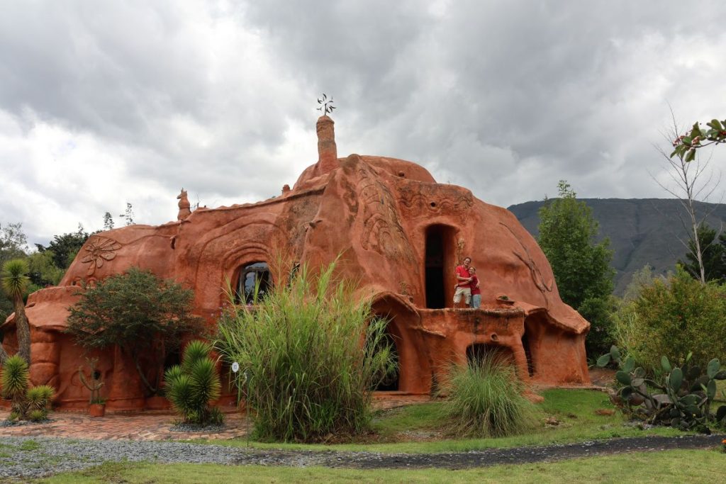 Das Haus vereint kreative Kunst, fantasievolle Architektur und konsequente Nachhaltigkeit. Wir sehen ein wenig Parallelen zu Hundertwasser und Gaudi mit kolumbianischer Mixtur. Das Haus zählt nun schon 50 Jahre alt und wird als größtes Keramikbauwerk der Welt bezeichnet. Wir haben uns gefragt, wie man so ein Haus überhaupt brennen kann. Tatsächlich wurde es Stück für Stück mit extra eingezogenen Backsteinmauern gebrannt und dann mit einer speziellen Farbe gestrichen.
