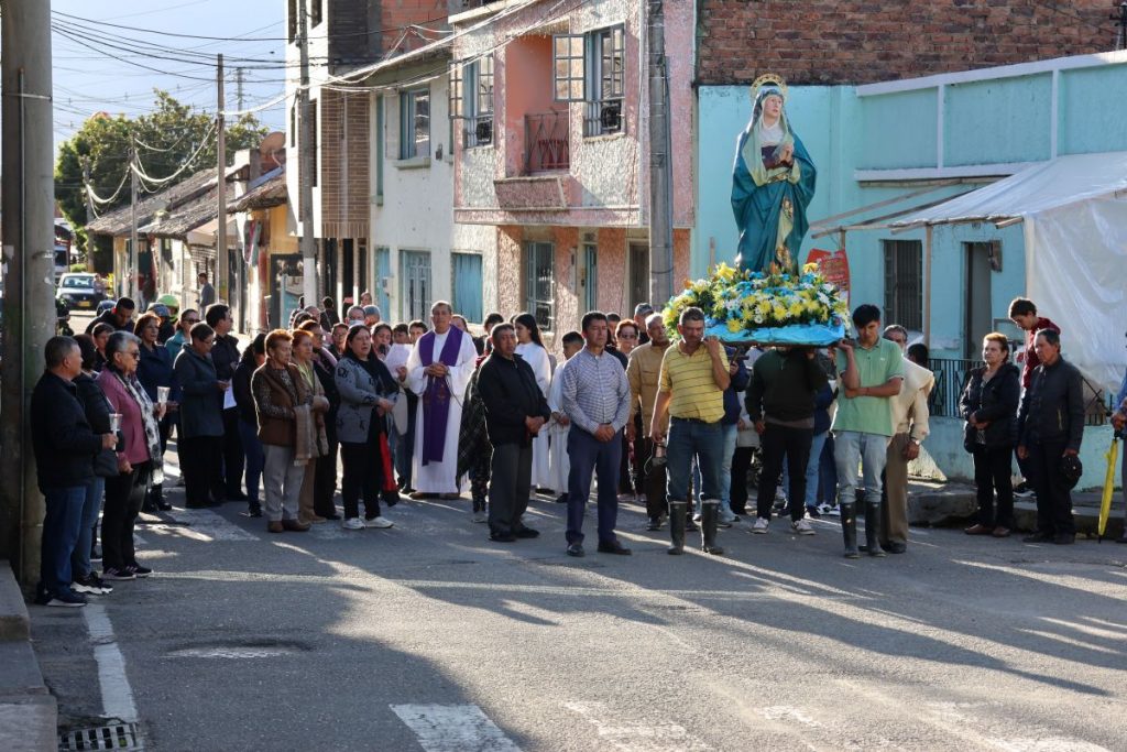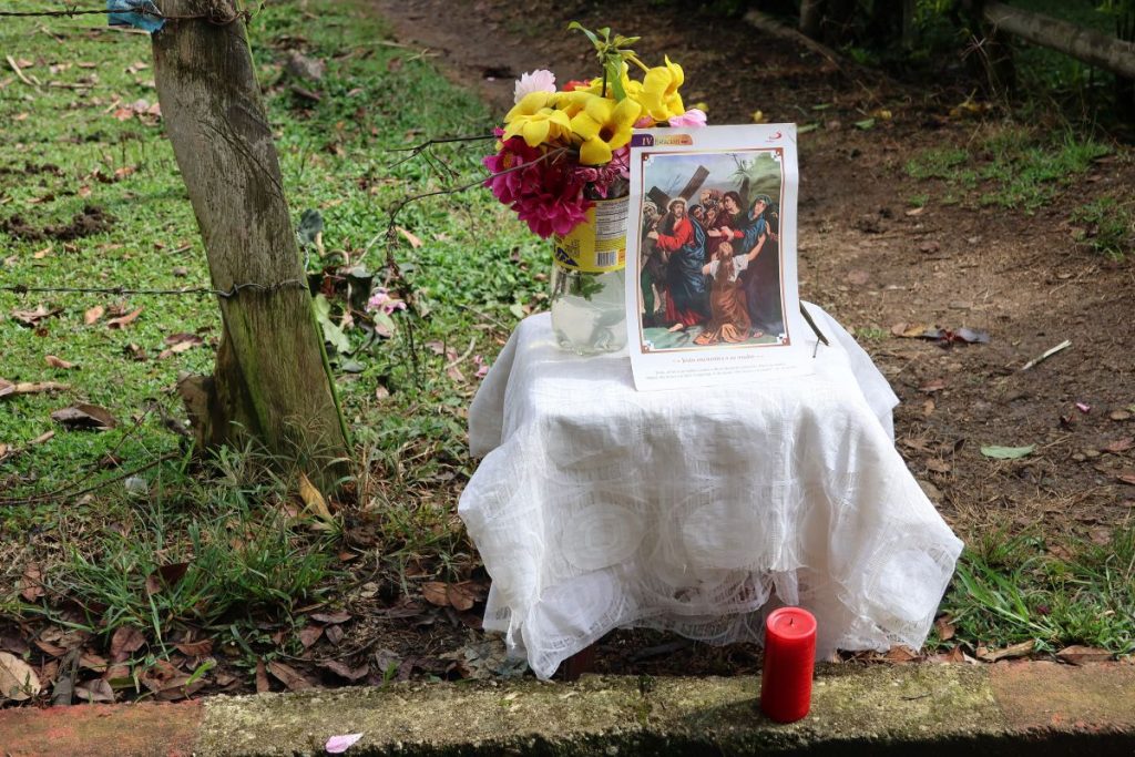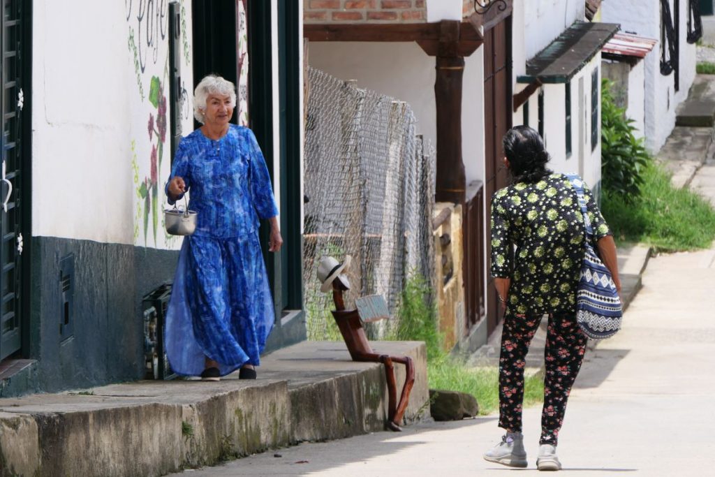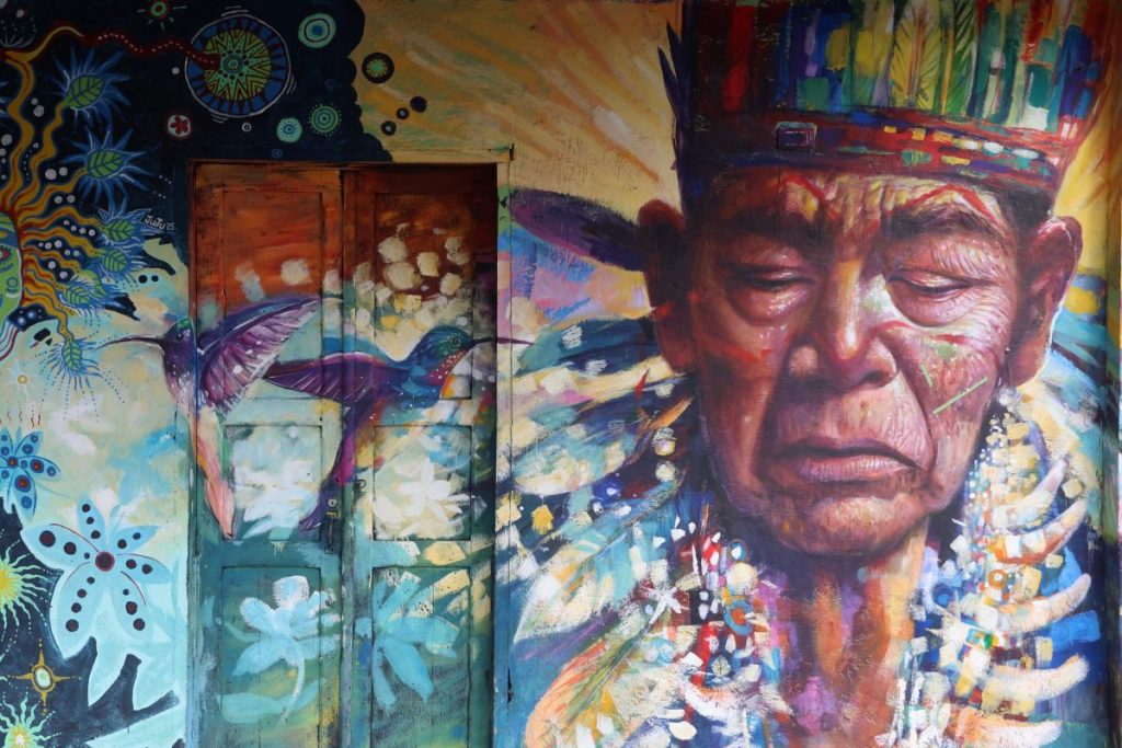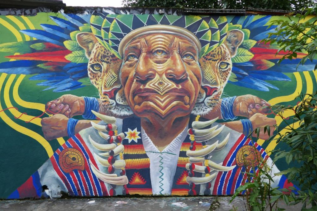 Nach 5 Stunden für 80 km kommen wir in Sibundoy auf 2150m Höhe an. Es ist ein Inka-Dorf und besteht seit 1492. Nun wird es von den Nachfahren der modernen Inga bewohnt. Der Ort ist mit schönen Murals und Holzschnitzereien im Park, welche die Inka- Mythologie und Tradition wiedergeben, geprägt. Wir stehen exponiert auf dem Platz vor der Kirche. Einige Einheimische interessieren sich für uns und Emma und sie sind alle sehr freundlich und wohlwollend. Der Platz füllt sich vor der Kirche und in der Kirche. Wir befinden uns mittendrin und dürfen das bunte Miteinander erleben.