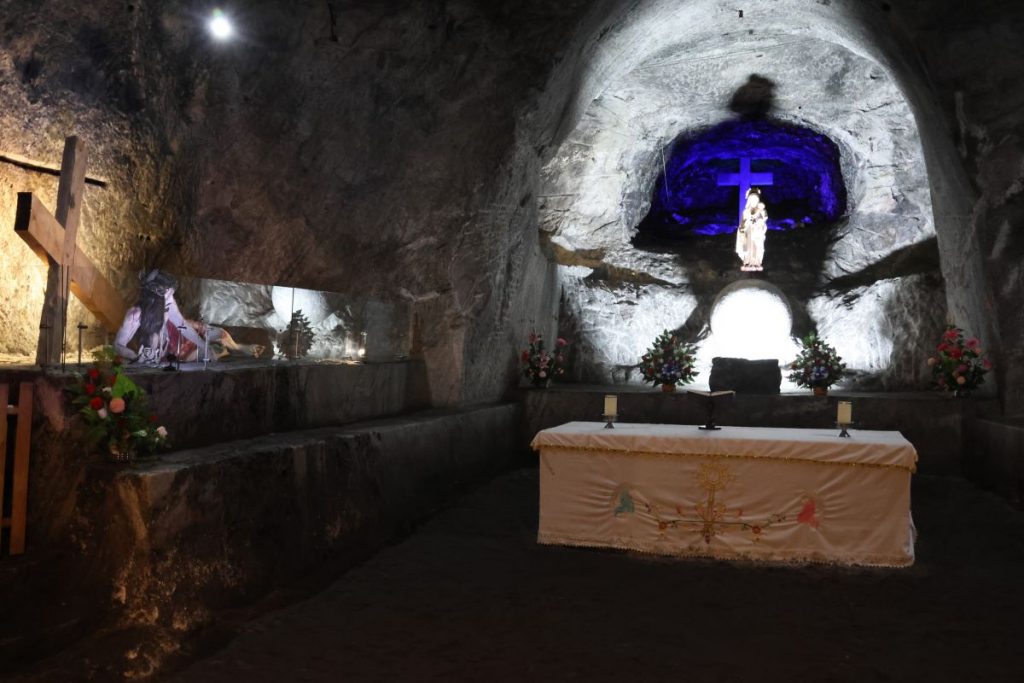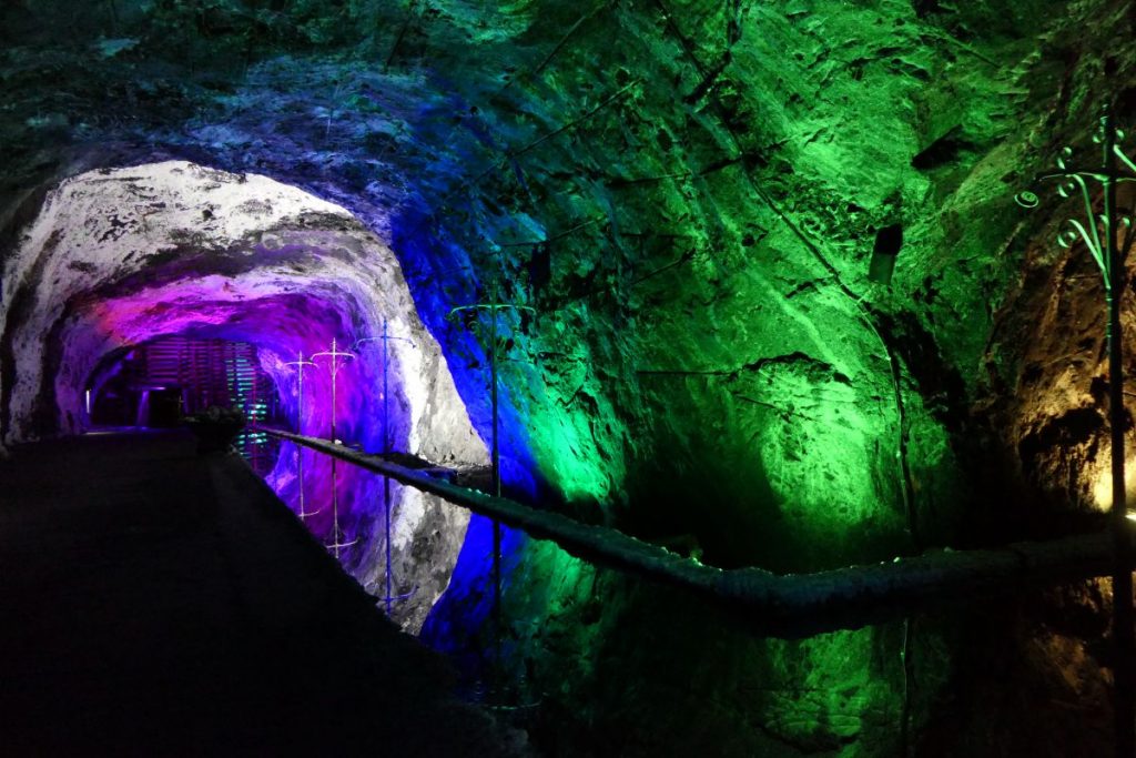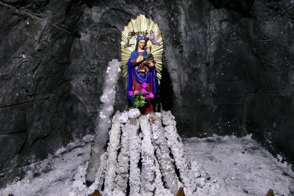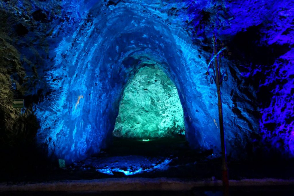 Wir gelangen durch einen Nebeneingang in die Mine, denn der Haupteingang wird gerade saniert. Von Rudolfo begleitet erkunden wir die wunderschön beleuchteten unterirdischen Gänge, mit Salz-Stalaktiten und Stalagmiten, mit einer Kirche und Altären und erfahren so einiges über die Geschichte dieser Salz Mine.