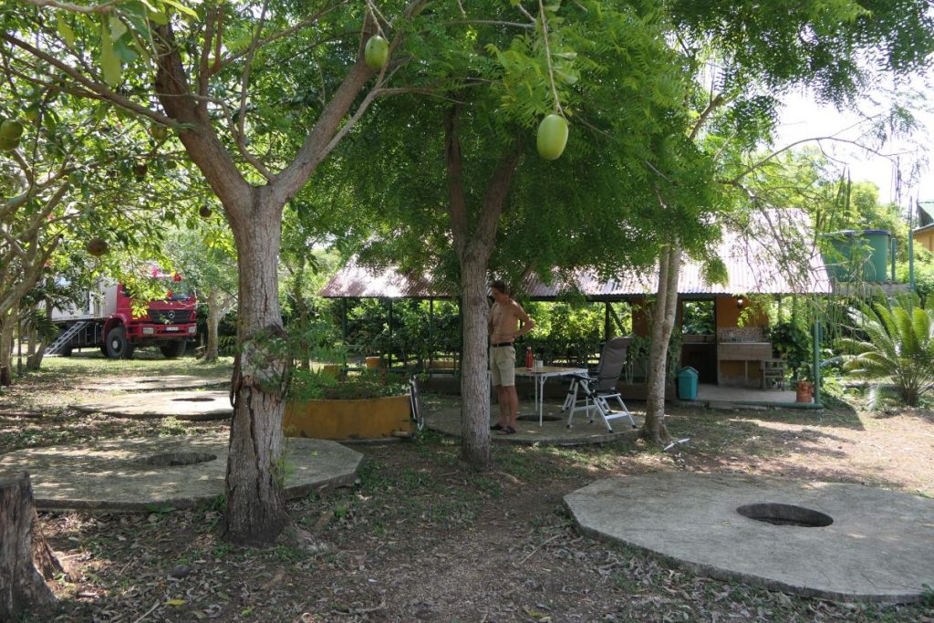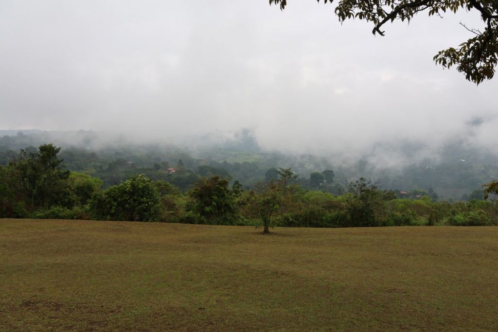 Ein Mopedfahrer ist uns behilflich und fährt voraus zum Campsite La Cabana San Luis von Rafael. Diese heißt uns herzlich willkommen und wir meistern die enge Zufahrt und das Wendemanöver auf sehr weichem Wiesengrund. Emma hinterlässt deutlich Spuren, doch das ist in der Regenzeit kaum zu vermeiden. Nun stehen wir auf der Wiese neben Kälbern und haben die ruhigsten Nachbarn (Friedhof) überhaupt.
