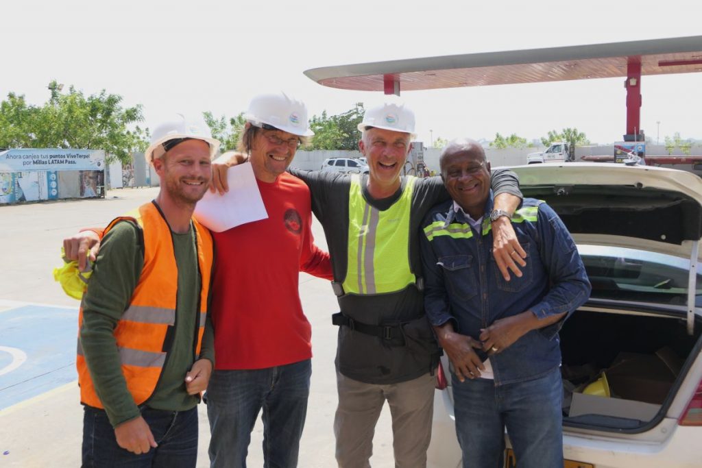 Mit Josue verabreden wir uns auf einer Tankstelle in der Nähe des Zolls. Pascal kommt auch dazu und Rodolfo bringt die drei Männer zum Hafengelände. Lange Ärmel, Hosen, geschlossene Schuhe und Helm sind Vorschrift. Ana und ich warten im Tankstellenrestaurant. Doch plötzlich ereilt mich ein Anruf von Andy, dass ich nun doch die Abnahme übernehmen muss. Also schnell hinein in die langen Klamotten und zurück zum Hafengelände. Rodolfo ist mein Begleiter und im Büro stellen wir schockierend fest, dass das TIP zwar meinen Namen hat doch Andys Passnummer. Da hat die Agentur etwas geschludert und wir konnten es nicht mehr kontrollieren. Jetzt ist Samstag Nachmittag und wir wissen nicht ob die Papiere geändert werden können. Rodolfo gibt alles, lässt seine Beziehungen spielen und nach ca. einer Stunde haben wir das geänderte TIP. Ich kann nun die Emma nach dem letzten Check eines netten Beamten auf die Waage und anschließend aus dem Zollgelände fahren.