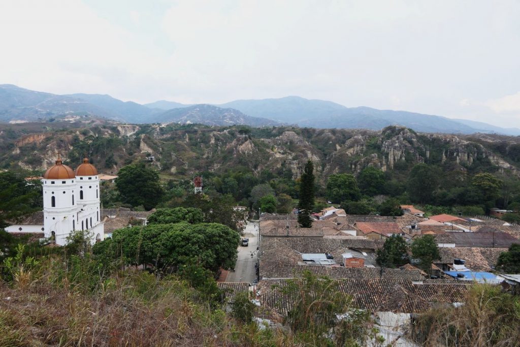 In Guane erwartet uns ein verschlafenes Örtchen mit einem geöffneten Restaurant. Hier genießen wir heimische und sehr gute Küche auf einem Holzofen zubereitet. Wir spazieren über die Dorfmitte mit einem schön angelegten Park und Blick auf die Kirche. Viel Zeit bleibt uns nicht, denn ein Sammeltaxi steht schon zur Abfahrt bereit nach Barichara. 7 km fahren wir zurück an den Abzweig zu unserem Campingplatz. Den letzten Kilometer legen wir nochmals steil aufwärts zu Fuß zurück und kommen müde jedoch erfüllt von unserer Wanderung in der Oase an.