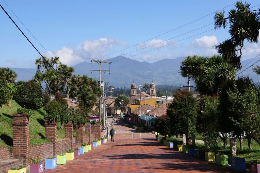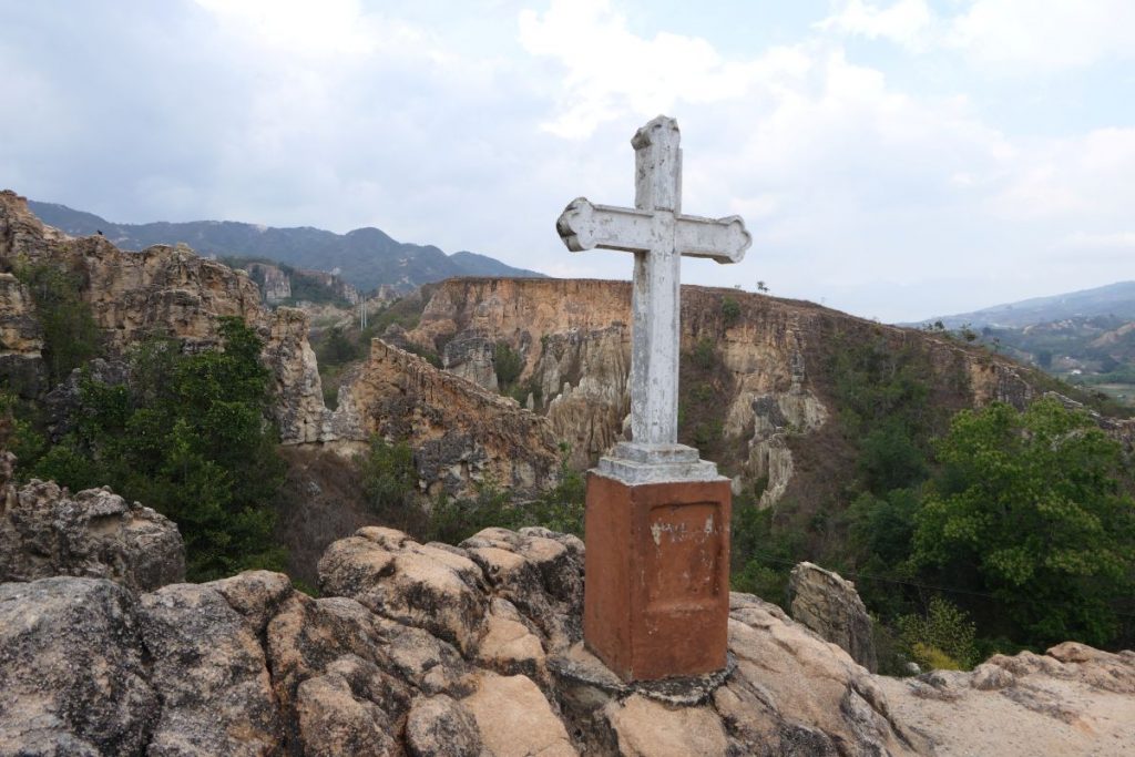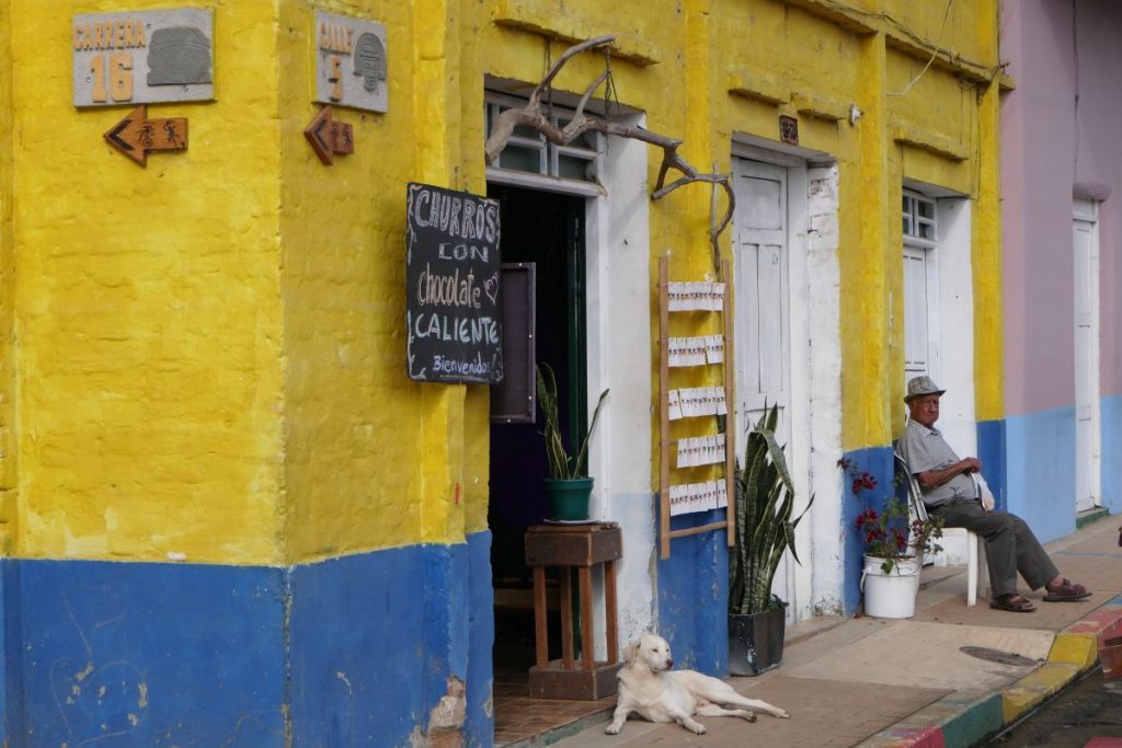 Solche Tage gibt es auch! Es läuft irgendwie alles schief. Erst möchten wir das besondere Terracotta Haus im Ort besuchen und laufen auf Pfützen übersäten, matschigen Wegen dorthin. Leider stehen wir vor verschlossenem Tor und erfahren, dass sie erst wieder am Freitag öffnen werden. Enttäuscht ziehen wir ab und nehmen uns die Christus-Statue vor mit Vogelperspektive auf den Ort Villa de Leyva. Doch am Aufstieg kommt uns das Wasser entgegen und nicht mal mit Gummistiefel hätten wir diesen Aufstieg auf glattem Fels geschafft. Wieder ziehen wir enttäuscht ab. Die heißgelobte Currybude hier im Ort hat auch geschlossen und zu guter Letzt trete ich zweimal in einen Hundehaufen, die auf den Wegen und dem Kopfsteinpflaster reichlich verteilt sind. Also der Ort hat seinen Padrimonio Reiz noch nicht auf uns ausgestrahlt, er konnte unsere Begeisterung noch nicht wecken. Der Plaza Mayor mit seinen beachtlichen 14.000 qm ist die größte Kolumbiens. Umsäumt wird er von der kolonialen Architektur und wurde auch darum 1954 zum Nationaldenkmal erklärt. Die Kopfsteinpflasterstraßen und weiß getünchten Gebäude sind gut erhalten und trotzdem fehlt uns persönlich der Flair.