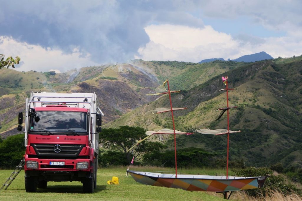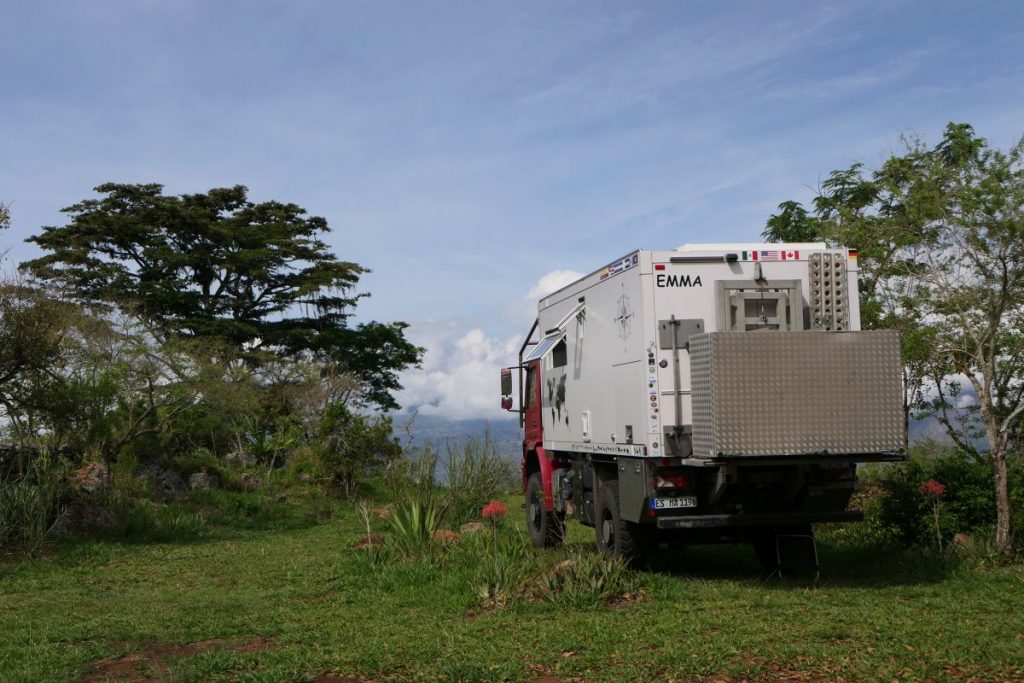 Wir erleben eine geballte Menge an LKW und Moped Verkehr. In den Bergen ist das Überholen nur bedingt möglich durch die serpentinenreichen Strecken. Das Hupen und das Spiel mit dem Abblendlicht benötigt eine Schulung für sich, da haben wir noch übungsbedarf. Was will mir das Hupen mitteilen? Signal für einen Überholvorgang, als Warnung für X, Y, Z oder doch nur als Begrüßung und Freude Weltenbummler mit einem Truck in ihrer Heimat zu sehen. Sonst ist auch alles andere Unterwegs, Pferdekarren, Fahrradfahrer, Sammeltaxis, Reiter auf Eseln und Pferden… vor allem die Mopeds überholen rechts, links und brausen direkt vor unsere Front, viele halten dann tatsächlich noch ein Handy ans Ohr. Beladen bis zum letzten Platz, zu viert mit ganzer Familie und Säugling, mit Hund und Huhn, Kanistern und Co. Äußerste Konzentration und Achtsamkeit ist nötig. Dazu kommt , dass die Überholvorgänge ohne Sicht von LKWs vor unübersichtlichen Kurven und Hügeln stattfinden. Oder uns bremst ein LKW aus, weil er in der Kurve beide Fahrbahnen mit seinem Auflieger benutzt und uns frontal entgegenkommt. Und wir machen die traurige Erfahrung, dass Steigerungen noch möglich sind, denn wir passieren immer wieder Unfallstellen.