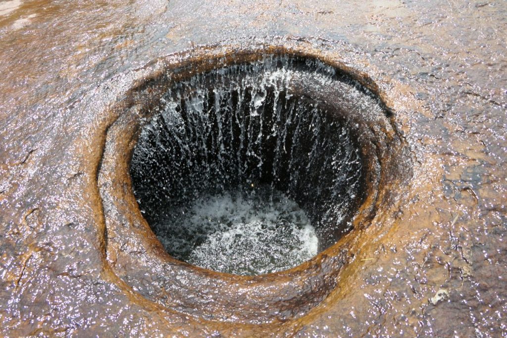 Oberhalb treffen wir Ana und Angelo wieder, wir haben uns hier verabredet. Doch wir sind nicht allein, denn kurzerhand sind fast alle Löcher von Einheimischen besetzt. Sie rutschen hinein, springen in die Löcher, gehen dabei ganz unter denn sie sind bis zu sechs Meter tief, lachen und albern und alle haben reichlich Spaß. Auch ein kleiner Hund rutscht ausversehen hinein und muss von seinem Besitzer herausgeholt werden.