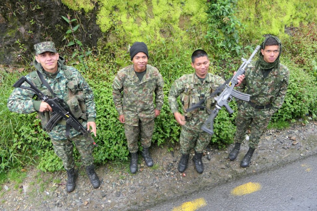 3260 m ist die höchste Passstelle nach Pasto, allerdings auf geteerter Straße. Genau auf der Passhöhe ist ein militärischer Kontrollposten. Wir werden von sehr jungen Männern mit Maschinengewehren ausgestattet kontrolliert. Sie sind neugierig, möchten die Emma innen betrachten und die Papiere sowie Führerschein sehen. Es hinterlässt ein seltsam beklemmendes Gefühl, denn für uns sind es noch Jungs mit äußerst gefährlichen Waffen.