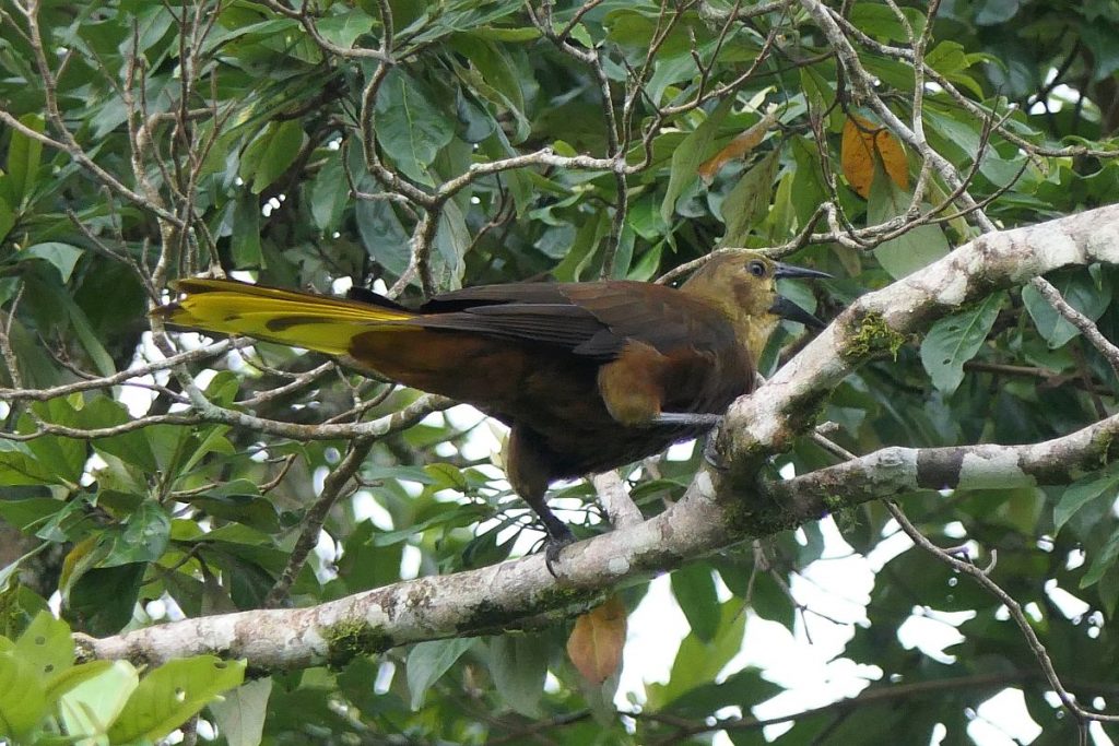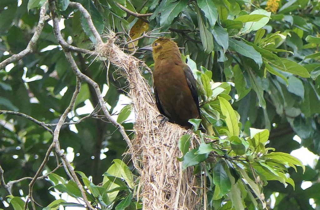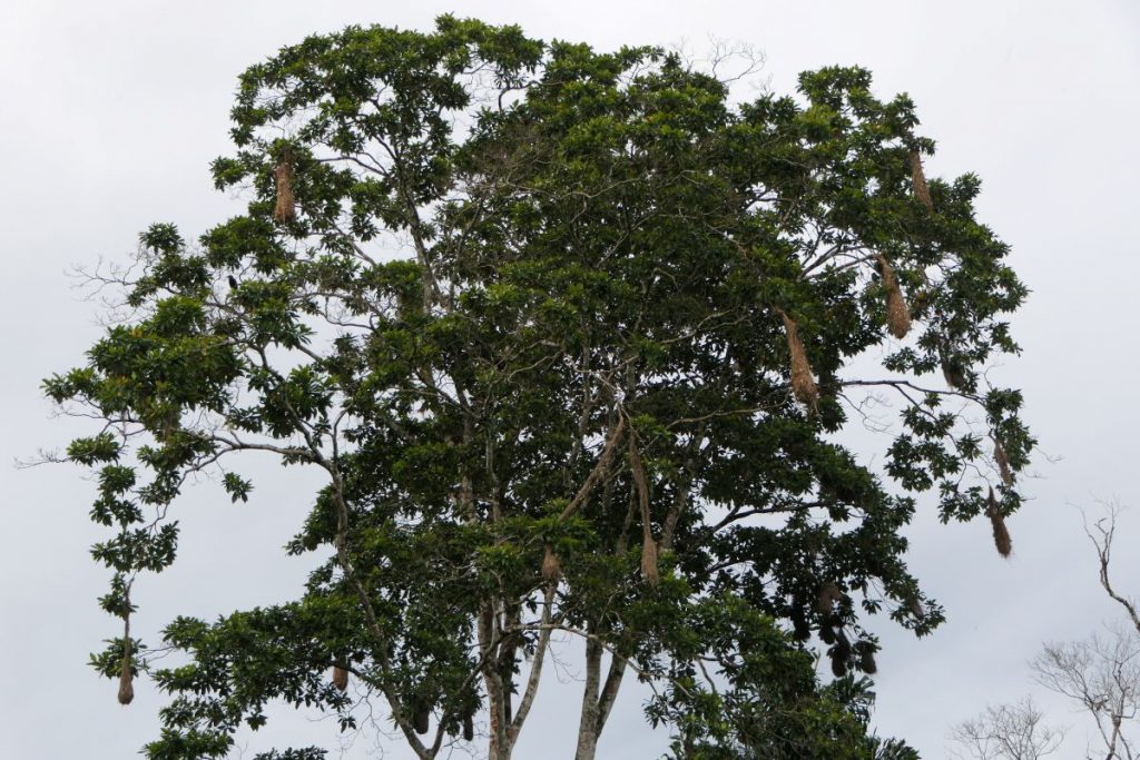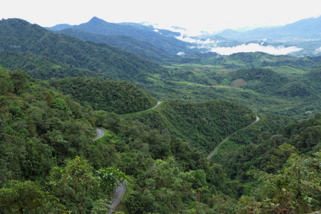 Zwischen den Anden und dem Amazonasgebiet führt eine kurvenreiche Straße durch den Dschungel. Was will uns sein Name wohl sagen? „Trampolin de la Muerte“ Sprungbrett des Todes, da wird es einem schon vom Namen allein ganz mulmig. Sie gilt als eine der gefährlichste Straße der Welt und erzählt auch eine Geschichte der Konflikte und des Staatsaufbaus in Putumayo. 80 km mit 18 Kurven pro Kilometer, eine einspurige 3 Meter breite unbefestigte Straße. Der Staub verwandelt sich auf dem instabilen Gelände zu Schlamm. Zwischen 600 Metern in Mocoa steigt die Straße auf 2800 Metern an, dazu präsentieren sich furchterregende Abgründe. Wir wissen, es ist Regenzeit und es kann auch zu Erdrutschen kommen. Doch Landschaftlich soll diese Strecke ein Highlight sein und wir erkundigen uns nach der Fahrbarkeit. Die Durchfahrt wird uns bejaht und die Wetterprognosen liegen sind auch nicht so schlecht. Also entscheiden wir uns für diesen Pass des Todes. Doch vorher erleben wir noch die Braunhaubenstirnvögel beim Balzen, Nestbau und Füttern der Jungen. Ein Baum ist mit Nestern der Vögel geschmückt und wir können das lautstarke Spektakel beobachten.