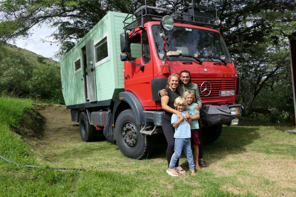 A third time we meet the Dutchmen Eefke and Pascal with their daughters Nienke and Karlijn. They’ve been traveling for two years now, first traveling through Europe and then shipping their 1017 Mercedes truck to Halifax. Since then they have been traveling around North America.