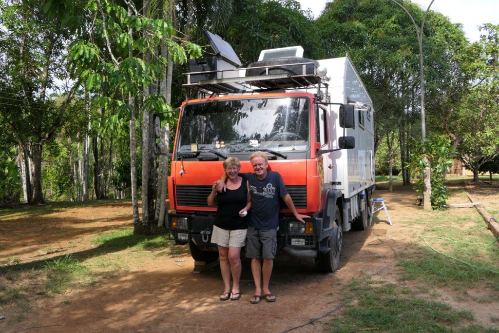 Ingrid und Branko aus den Niederlanden lieben ihr in Deutschland hergestellten Fuso Canter. Der Ausbau von Woelke ist bestens durchdacht und gut umgesetzt. Sie reisen nun schon 7 Jahre durch die Welt und waren auch mit Motorrädern zuvor in Ushuaia. Also ein Leben voll mit Reiseerlebnissen. Vielleicht treffen wir uns wieder oder fahren eine Strecke zusammen, denn auch Suriname steht auf ihrem Plan. Wir würden uns darüber sehr freuen und wir bleiben in Kontakt. Alles Gute euch beiden.