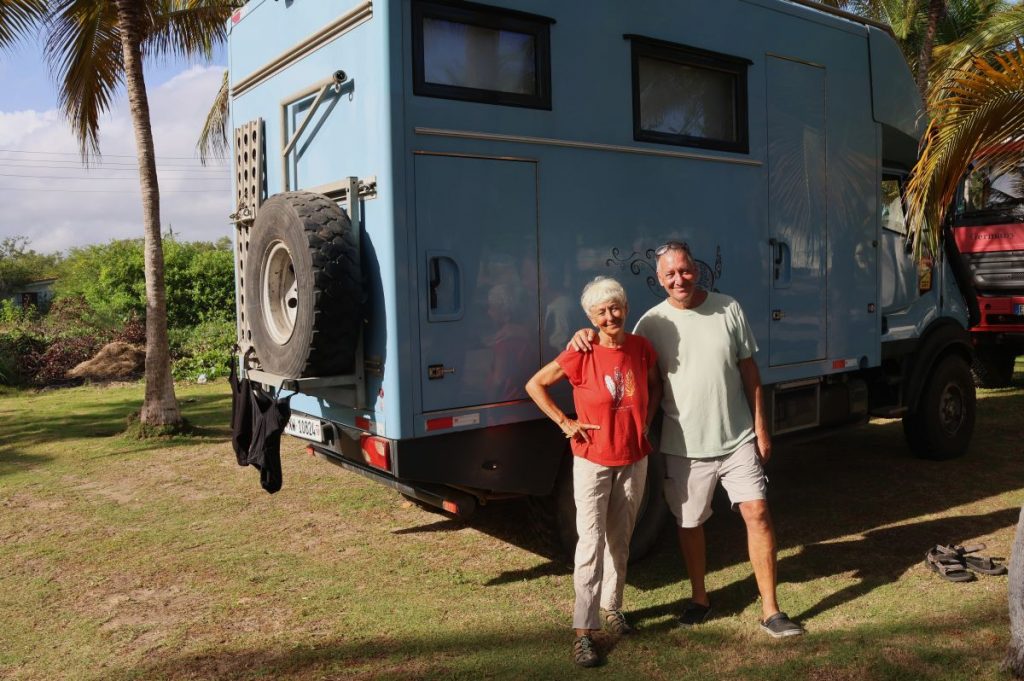 Ingrid und Branko aus den Niederlanden lieben ihr in Deutschland hergestellten Fuso Canter. Der Ausbau von Woelke ist bestens durchdacht und gut umgesetzt. Sie reisen nun schon 7 Jahre durch die Welt und waren auch mit Motorrädern zuvor in Ushuaia. Also ein Leben voll mit Reiseerlebnissen. Vielleicht treffen wir uns wieder oder fahren eine Strecke zusammen, denn auch Suriname steht auf ihrem Plan. Wir würden uns darüber sehr freuen und wir bleiben in Kontakt. Alles Gute euch beiden.